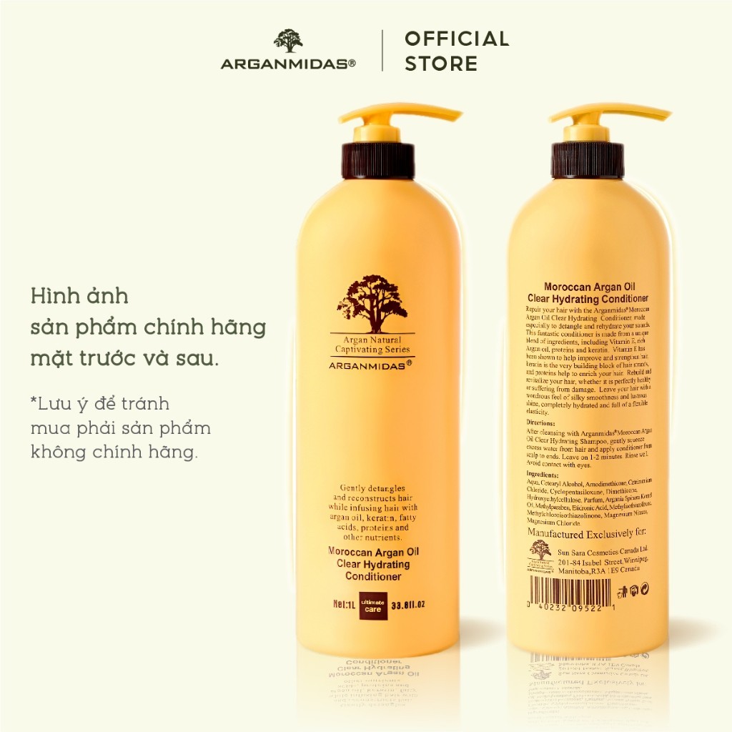 Combo gội xả giảm gãy rụng siêu dưỡng ẩm Arganmidas 1000ml Moroccan Argan Oil Clear Hydrating tóc suôn mượt