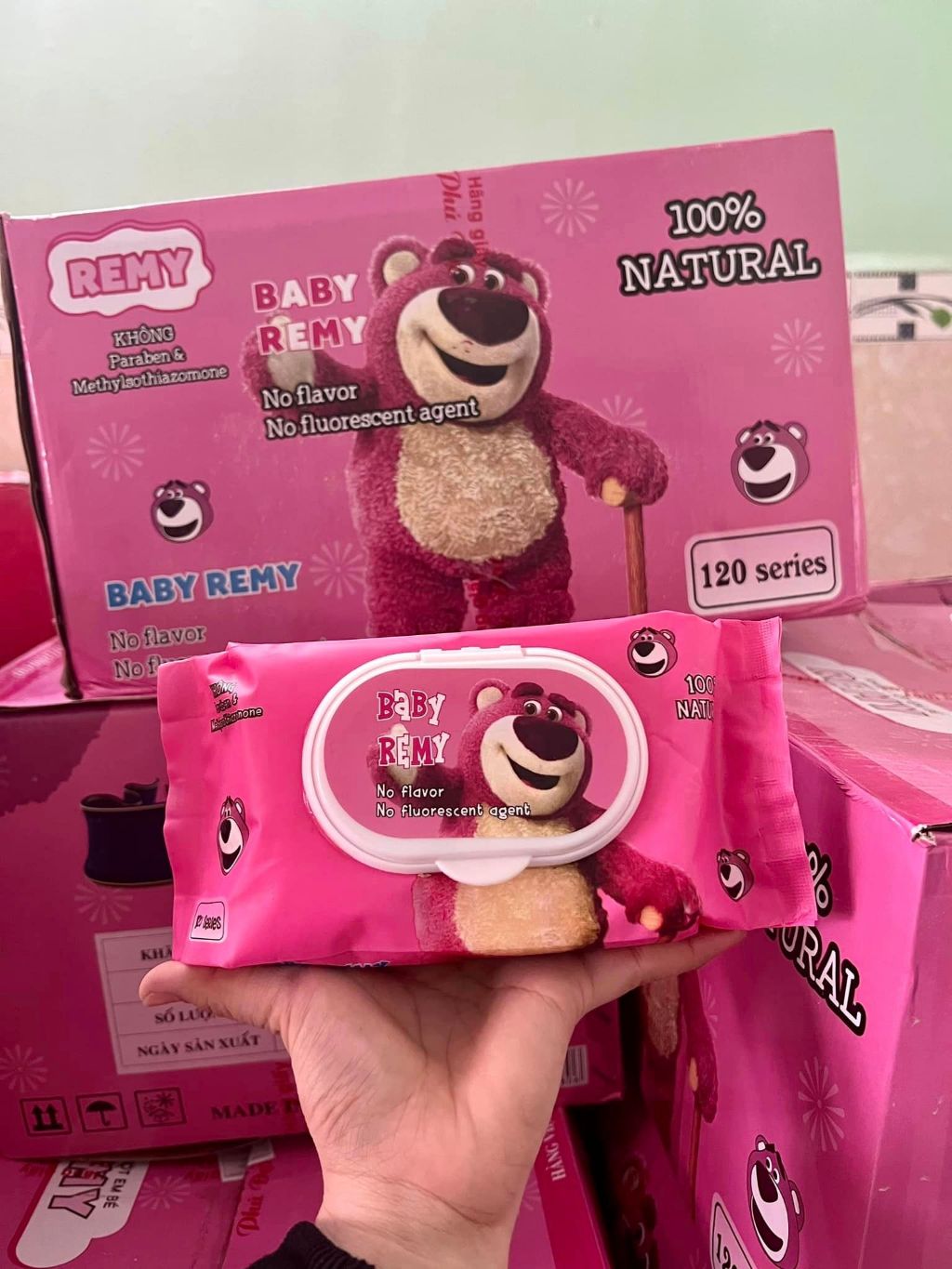Khăn giấy ướt GẤU DÂU PHÚ ĐẠT màu hồng chính hãng sử dụng an toàn cho bé gói 120 tờ date mới nhất siêu hót