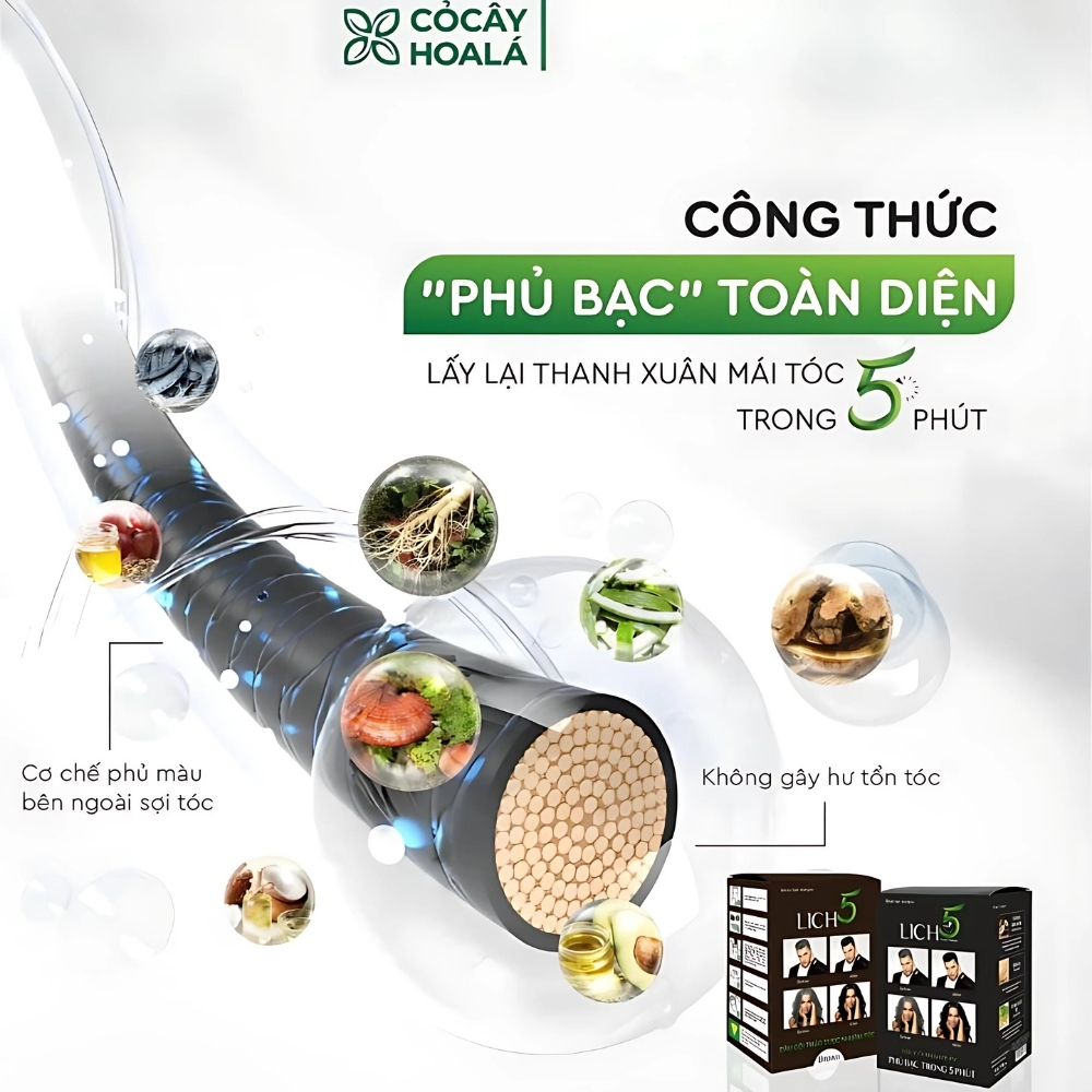 Dầu Gội Nhuộm Tóc Lich5 Cocayhoala Chính Hãng Việt Nam – Thảo Dược, Phủ Bạc, Không Paraben Sulfate
