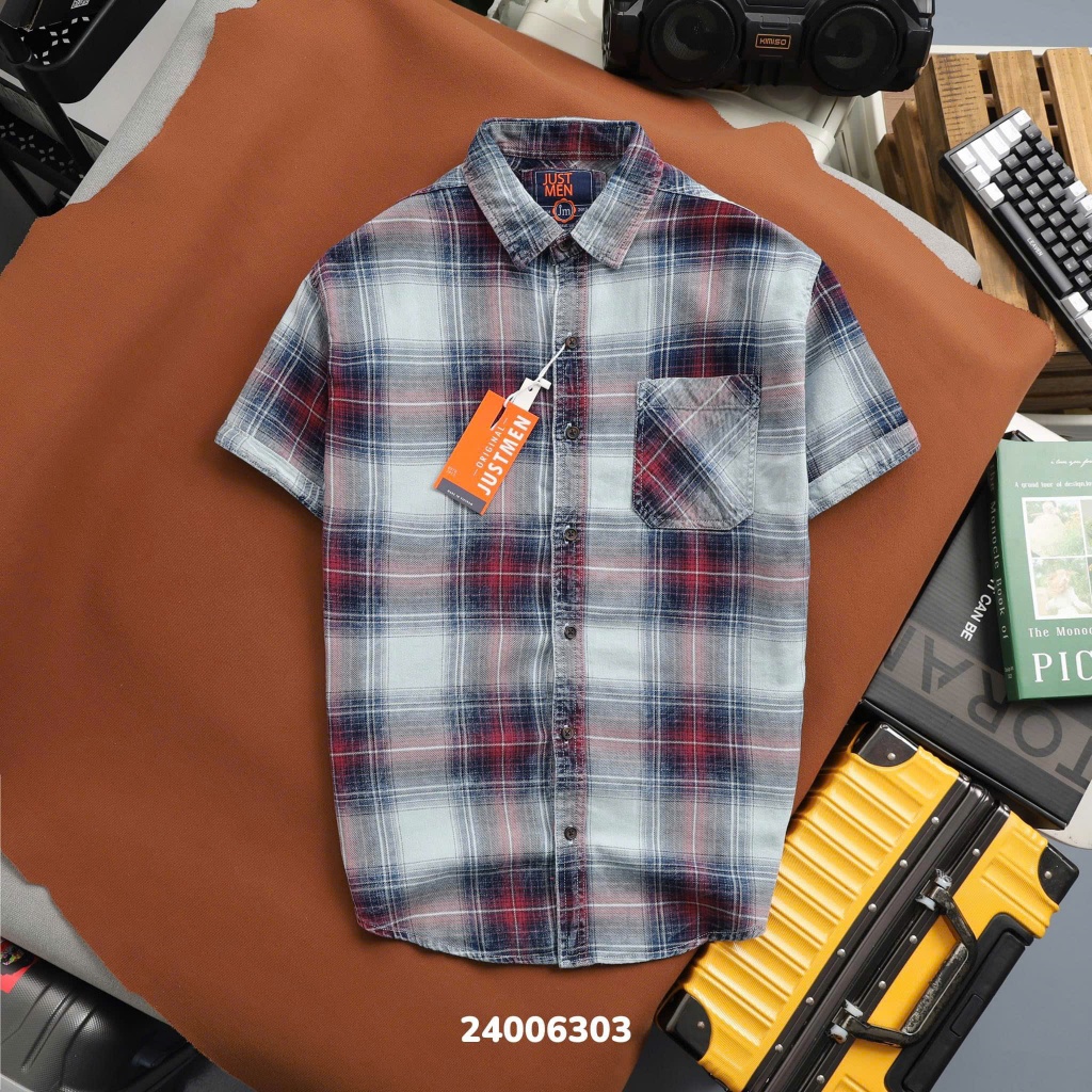 Áo Sơ mi Caro Just Men Tay Ngắn,Trẻ Trung , Thanh Lịch, Form dáng chuẩn