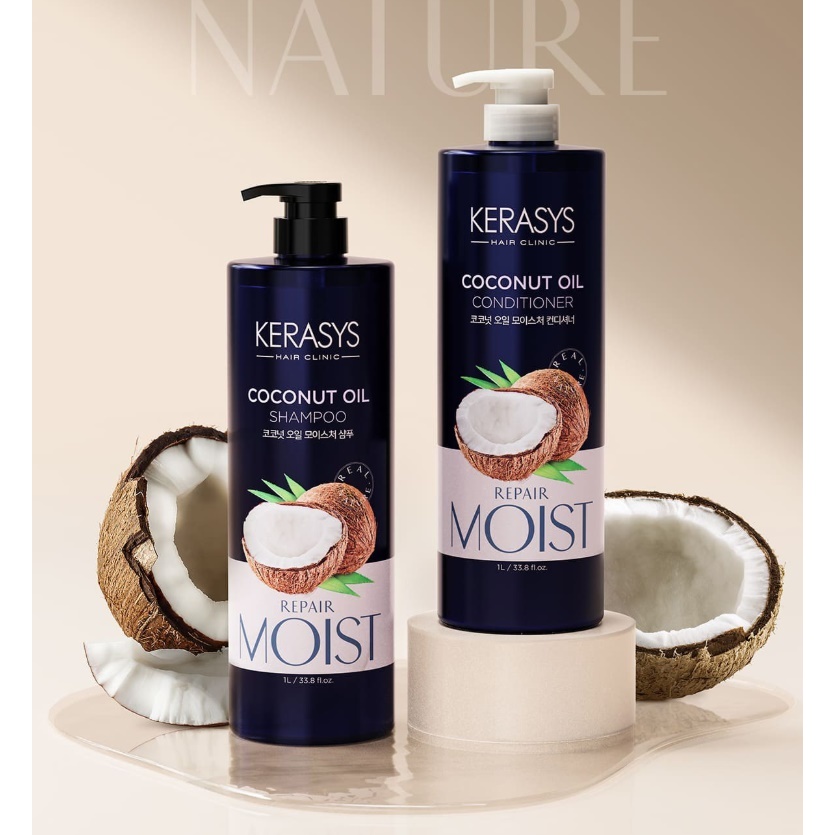[Kerasys] dầu dừa Dầu gội & dầu xả kem ủ tóc Dầu xả phục hồi tóc hư tổn 1000ml OliveYoung Korean