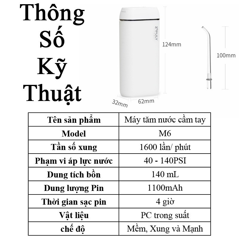 (BẢN QUỐC TẾ 4 ĐẦU TĂM) Máy tăm nước XiaomiEnpuly cầm tay bản mới nhất chống nước IPX8 máy tăm nước M6 Plus