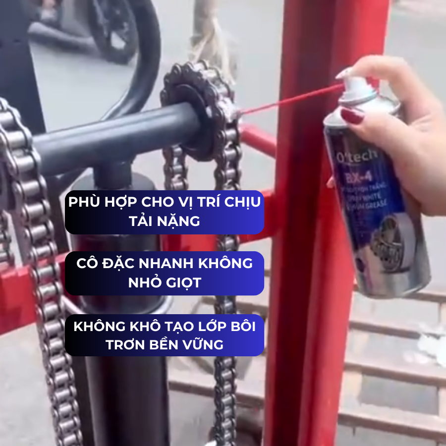 Mỡ bò chịu nhiệt bôi trơn tẩy rỉ sét O'TECH BX-4 Lithium White Grease - Mỡ bôi trơn trắng dạng xịt