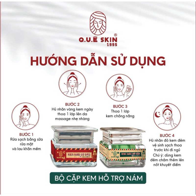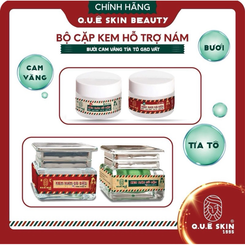 BỘ CẶP KEM [ hỗ trợ NÁM ] Quê skin chiết xuất bưởi, cam vàng tía tô gạo vắt (1 ngày+1 đêm) hỗ trợ cho Da nhạy cảm Skin
