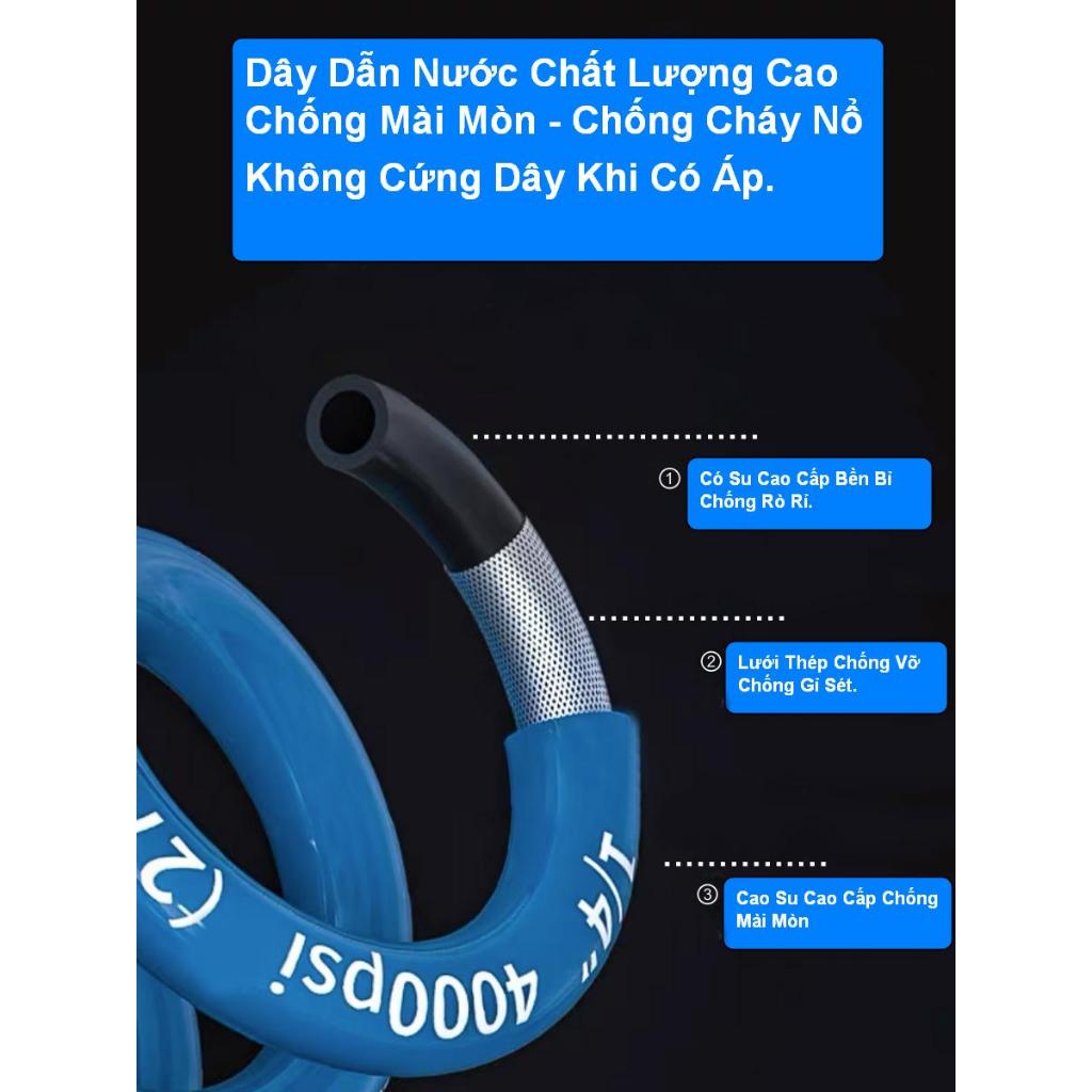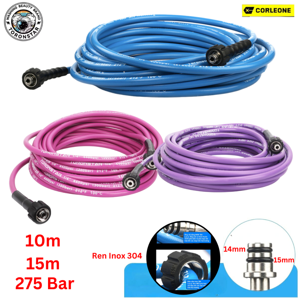 Dây Ống Nước Cao Áp Cho Máy Rửa Xe Áp Lực Cao Chính Hãng Toronstar - Corleone Ren Inox Chống Cháy Áp Max 275 Bar - TRRI