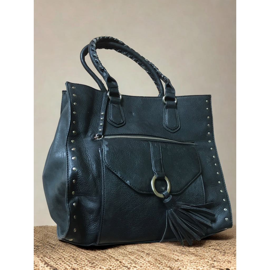 Túi xách nữ hàng si tuyển 92% – Form to, đinh tán cá tính, có tua rua, size 34x30cm