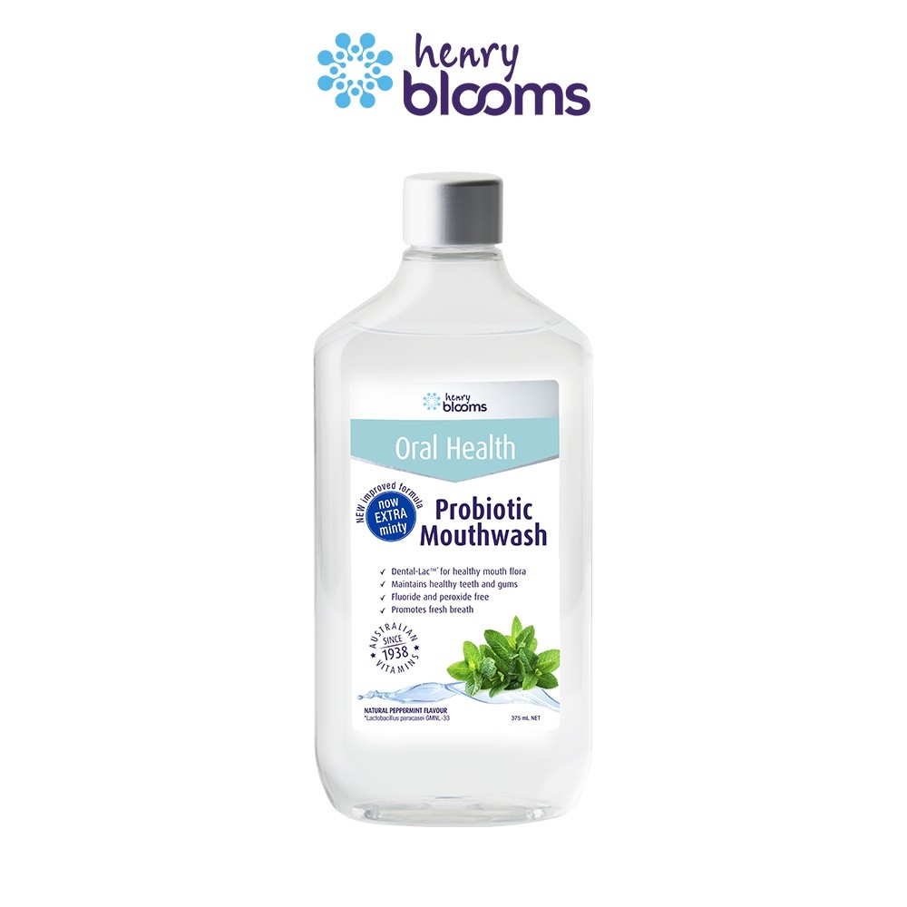 Nước súc miệng Henry Blooms Probiotic Mouthwash 375ml mang lại hơi thở thơm mát chống hôi miệng hiệu quả HB0002