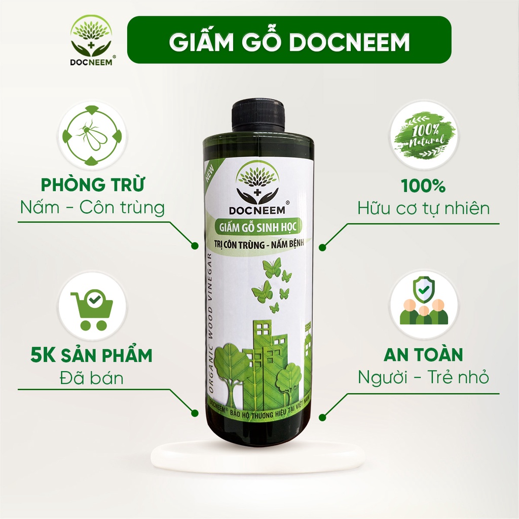 Giấm gỗ sinh học 500ml DOCNEEM phòng ngừa xua đuổi côn trùng, diệt nấm lá cây cảnh, hoa, rau củ quả