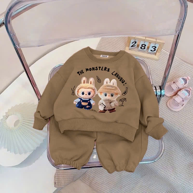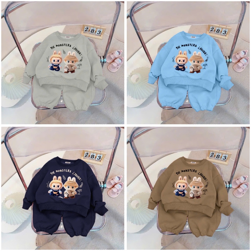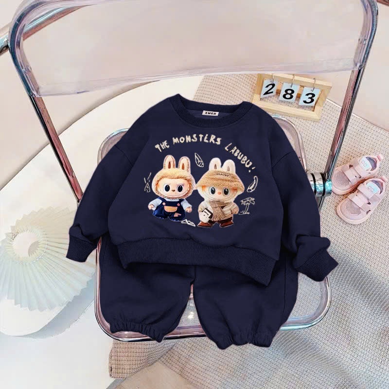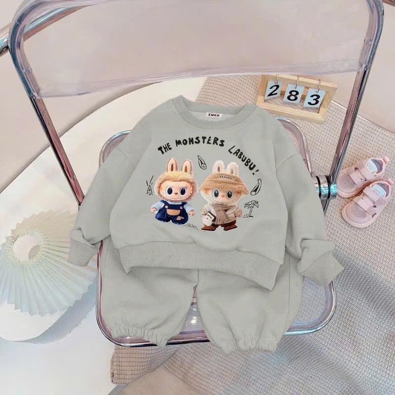 BỘ LABUBU DÀI TAY THU ĐÔNG CHẤT LIỆU NỈ DA CÁ TÀU DÀY DẶN CHO BÉ 8-20KG