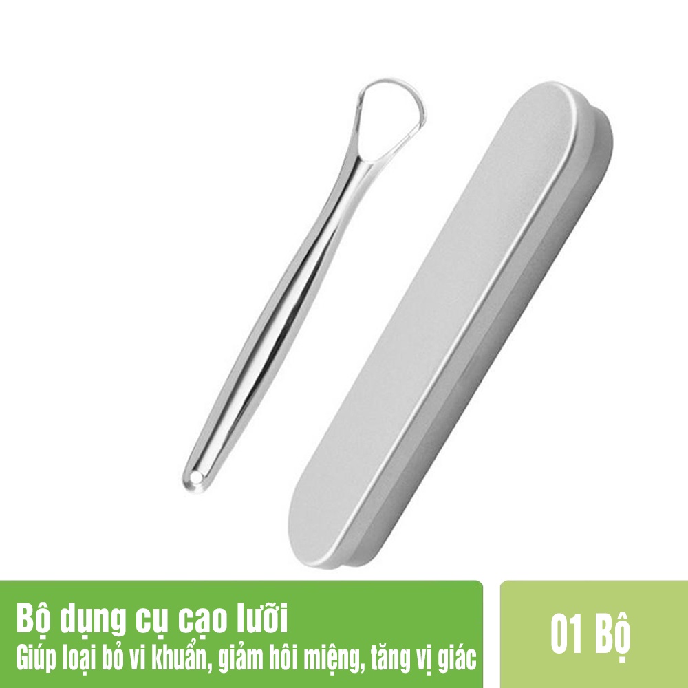 Dụng cụ cạo lưỡi, Dụng cụ vệ sinh lưỡi inox cao cấp kèm hộp - Giúp loại bỏ vi khuẩn, giảm hôi miệng, tăng vị giác