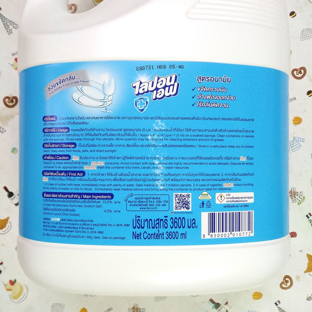 [ĐỐNG ĐA, HN - HỎA TỐC] Nước rửa chén bát LIPON Thái Lan 3200ml can dầu đĩa ly đậm đặc LION washing