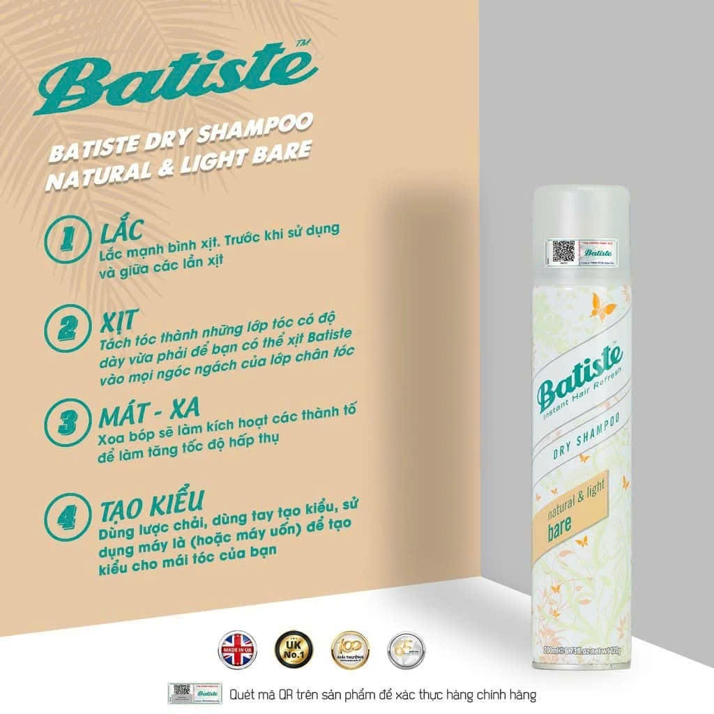 Dầu Gội Khô Batiste Dry Shampoo 200ml Hết Ngứa, Hết Bết Dính Tóc Bồng Bềnh Tức Thì CHÍNH HÃNG