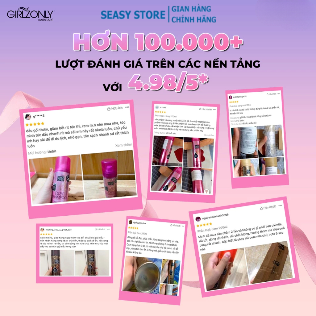 Dầu gội khô Girlz Only GZ1 Dry Shampoo dạng xịt 100ml 200ml giảm bết tức thì, tóc phồng tự nhiên