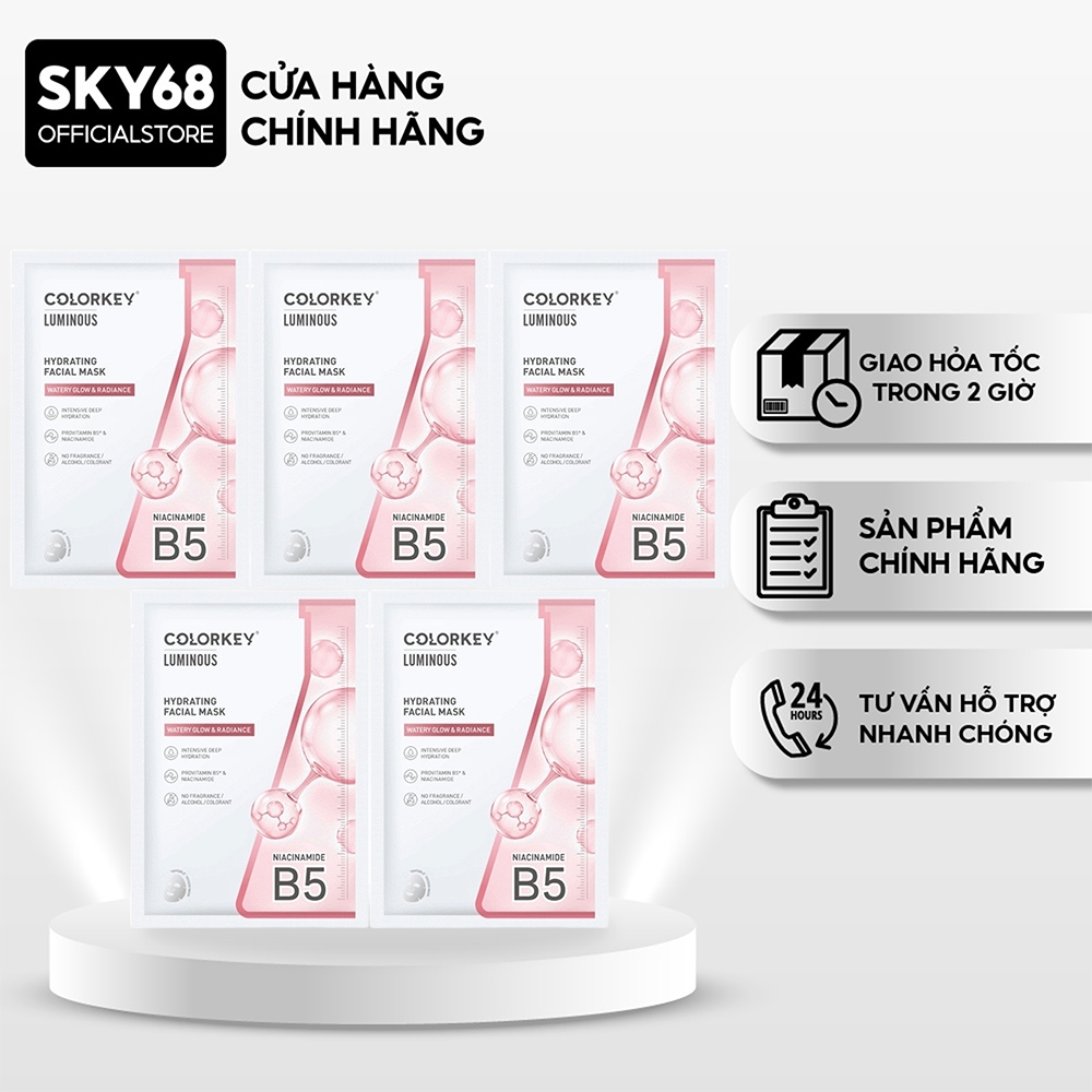 Combo 5 Mặt Nạ Dưỡng Ẩm Trắng Da Colorkey Luminous Hydrating Facial Mask 25mlx5 - HỒNG