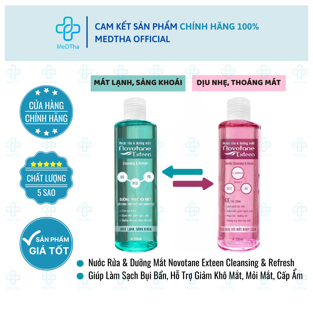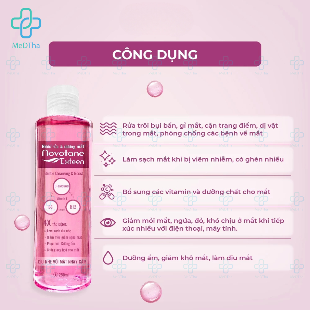Nước Rửa Mắt Novotane Exteen - Giúp Làm Sạch Bụi Bẩn, Hỗ Trợ Giảm Khô Mắt, Mỏi Mắt, Cấp Ẩm, Dưỡng Mắt
