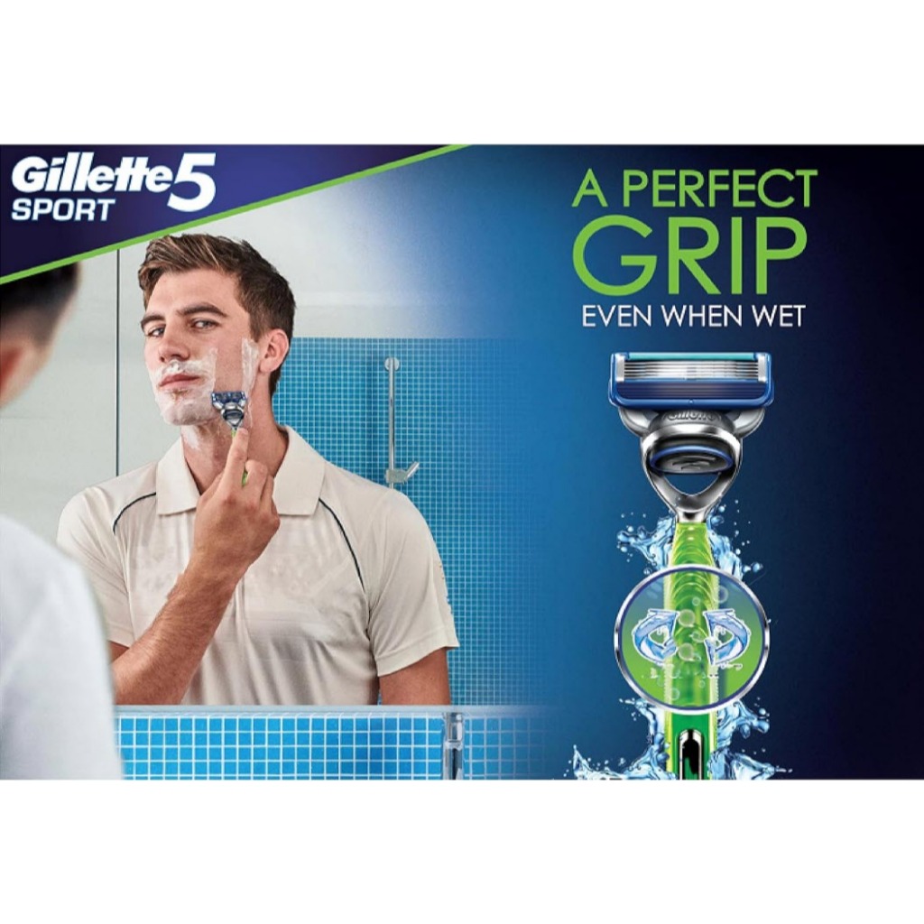 Dao cạo râu 5 lưỡi Gillette Sport5 - Nhỏ gọn, tay cầm chống trơn trượt 360 độ