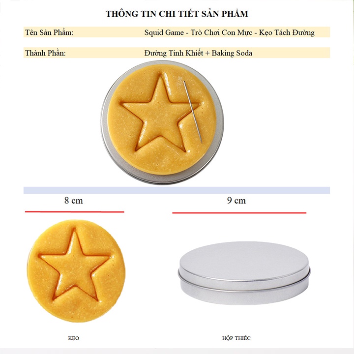 Trò chơi Squid Game - Trò tách kẹo - Kẹo đường Dalgona kích thước chuẩn film Trò chơi con mực siêu hấp dẫn