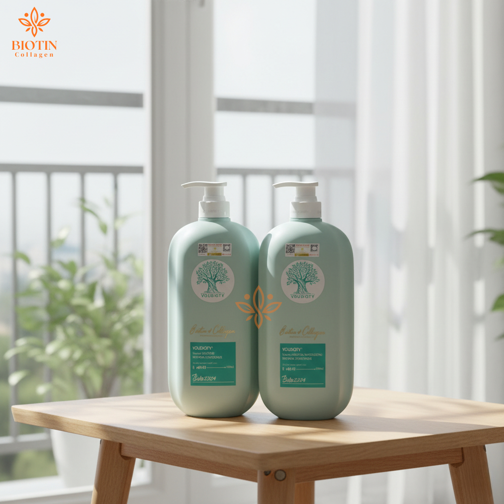 Dầu Gội Biotin Collagen Voudioty Xanh Dương Ngăn Gàu, Giảm Rụng Tóc, Kích Mọc Tóc 500ml/1000ml Mẫu Mới 2024
