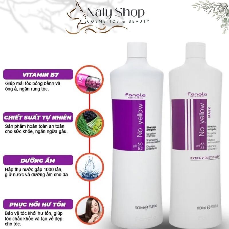 Dầu Gội Tím Fanola No Yellow 1000ml, Dầu Gội Khử Ánh Vàng Italy, Dầu Gội Giữ Màu Cho Tóc Tẩy Nhuộm Màu Thời Trang Naly