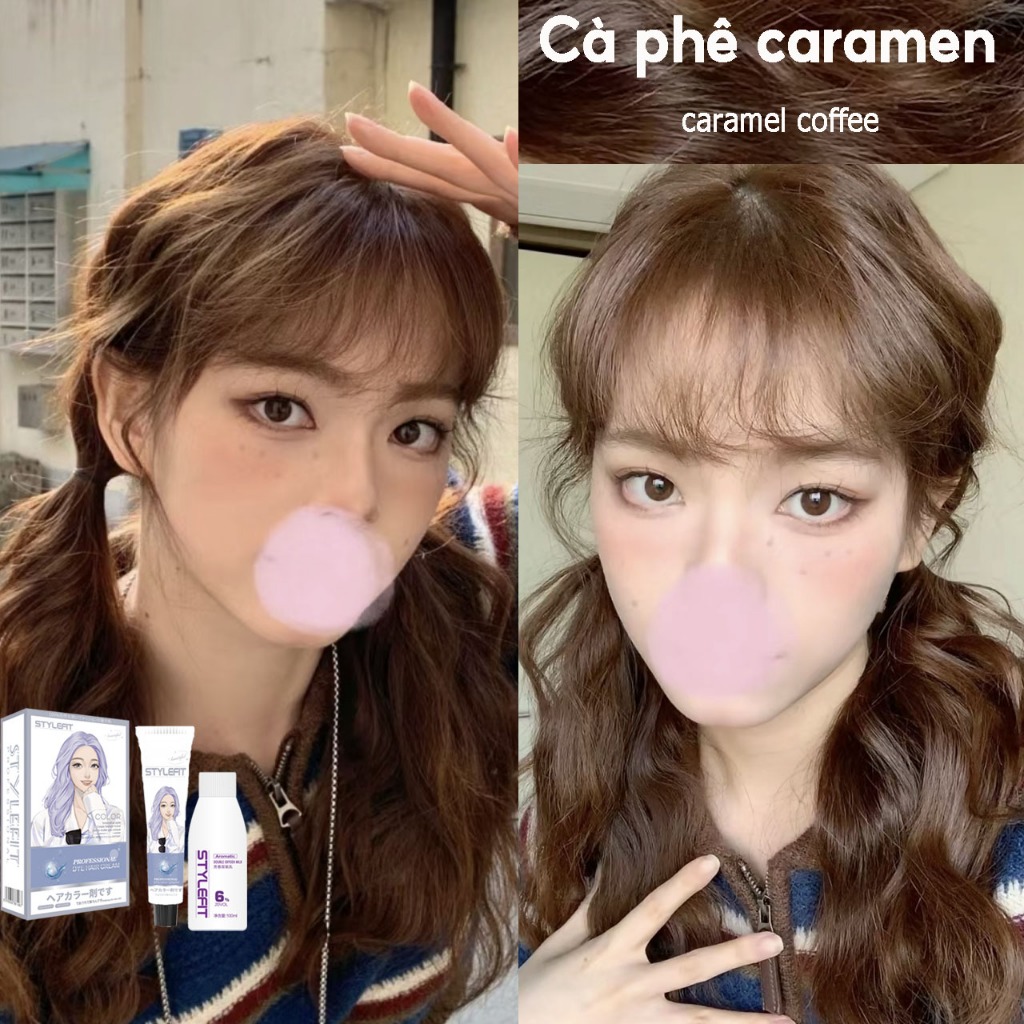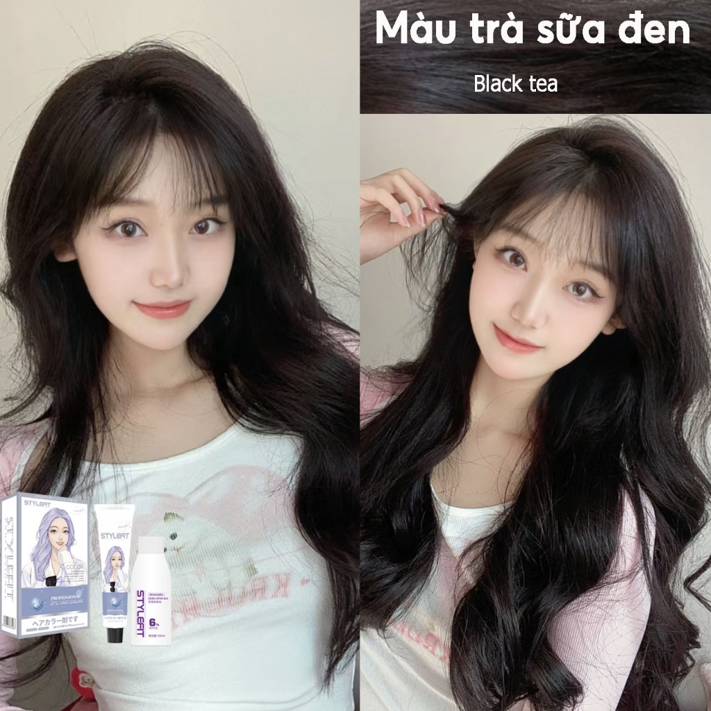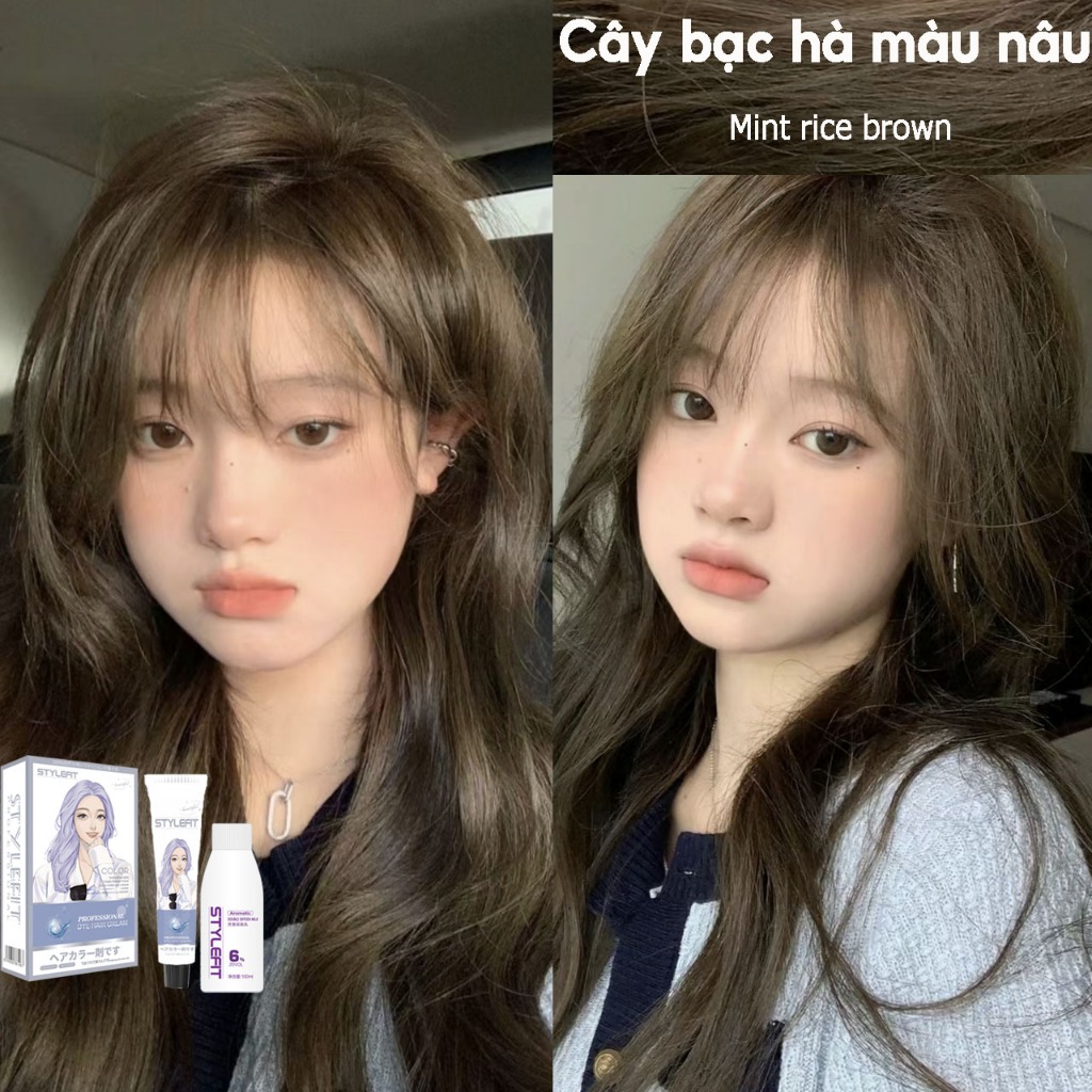 Thuốc nhuộm tóc nâu tây, Trà sữa nâu xám gửi một bộ dụng cụ nhuộm tóc đầy đủ💖 dầu xả,Trích xuất tinh chất thảo dược
