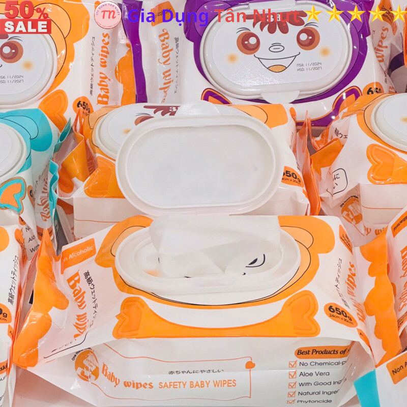 Sku166-Thùng khăn giấy ước cao cấp BABY WIPES công nghệ nhật bản,650g - 20x24cm ,dày, mềm mịn