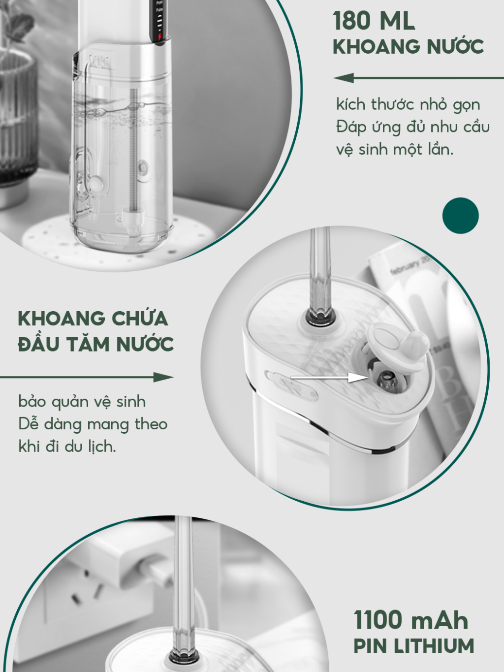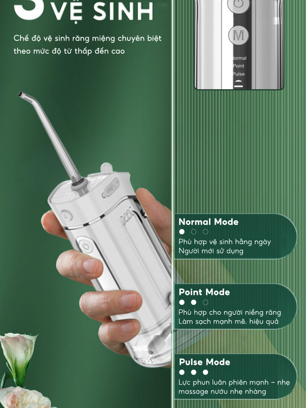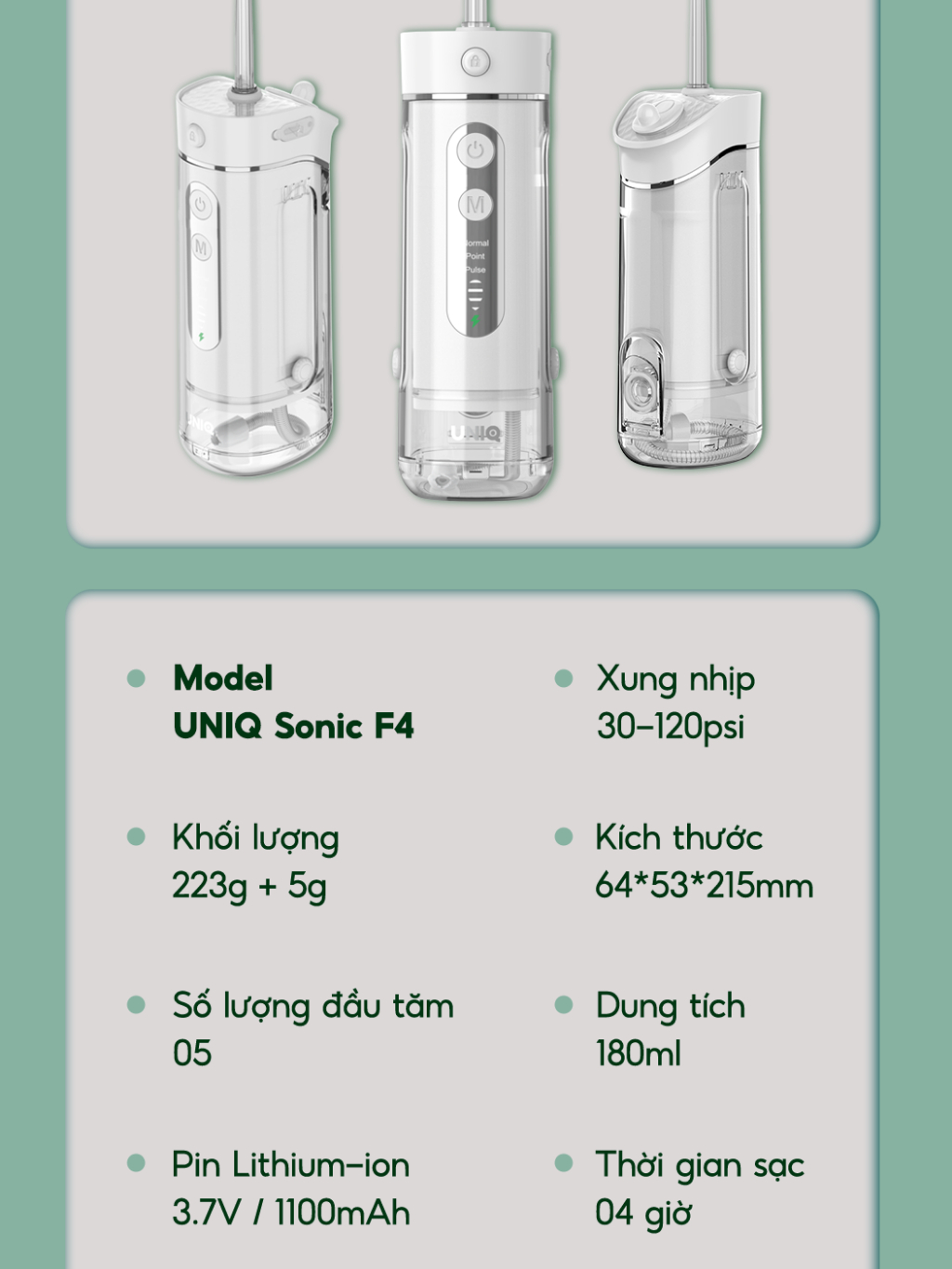 Tăm nước UNIQ Sonic F4 máy tăm nước mini gấp gọn vệ sinh răng miệng tam nuoc du lịch cầm tay nhỏ gọn chống thấm nước