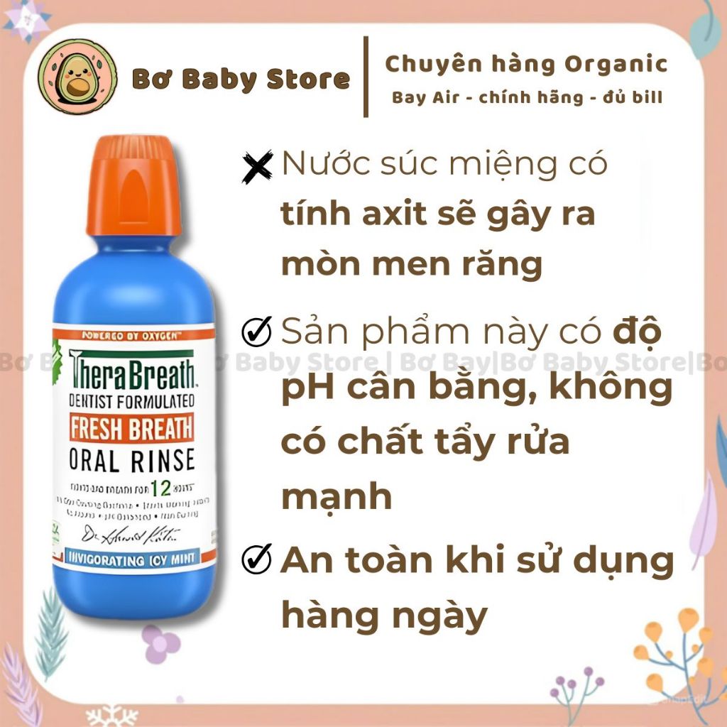 Nước súc miệng TheraBreath thơm miệng, ngừa sâu răng, giảm viêm lợi, tụt lợi vị Icy Mint (Bay Air - Đủ Bill)