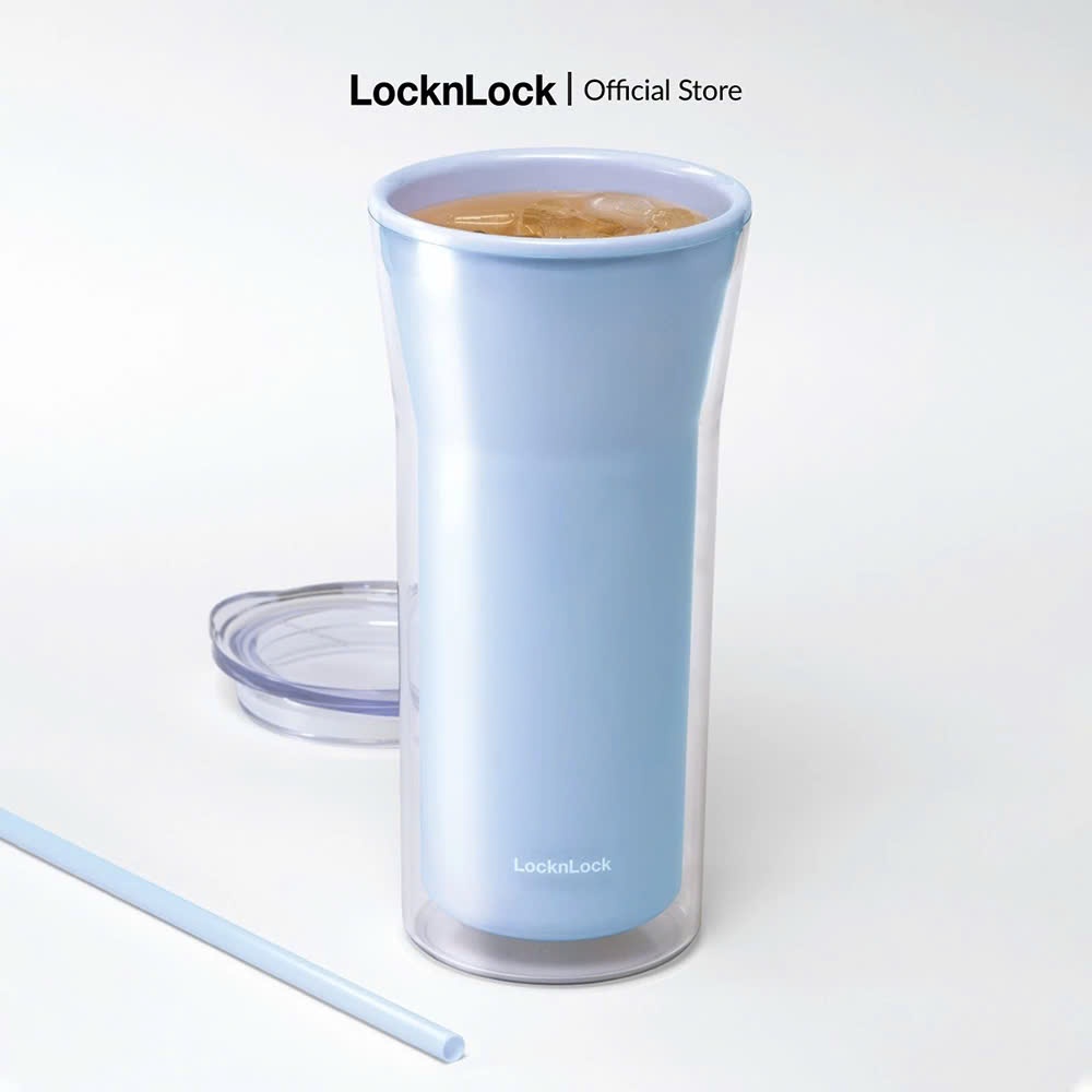 Ly nhựa 2 lớp LocknLock Daily Essential Double Wall Cold Cup HAP526 770ML kèm ống hút, cọ rửa K-MALL