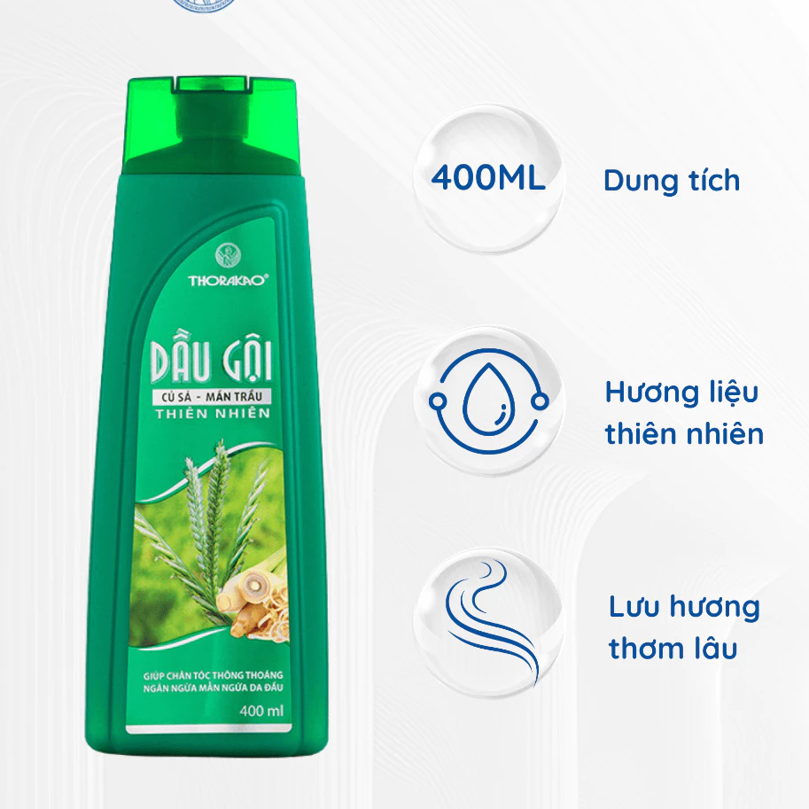 Dầu Gội Thorakao Củ Sả Mần Chầu Giúp Hỗ Trợ Tóc Mềm Mượt, Giảm Khô Xơ Giảm Gàu Và Ngứa Da Đầu 400ml
