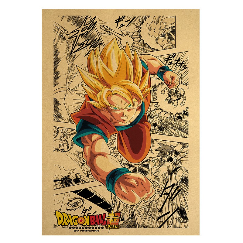 Poster in hoạt hình Dragon Ball Son 7 viên ngọc rồng Goku Áp phích giấy Kraft cổ điển trang trí quán cà phê