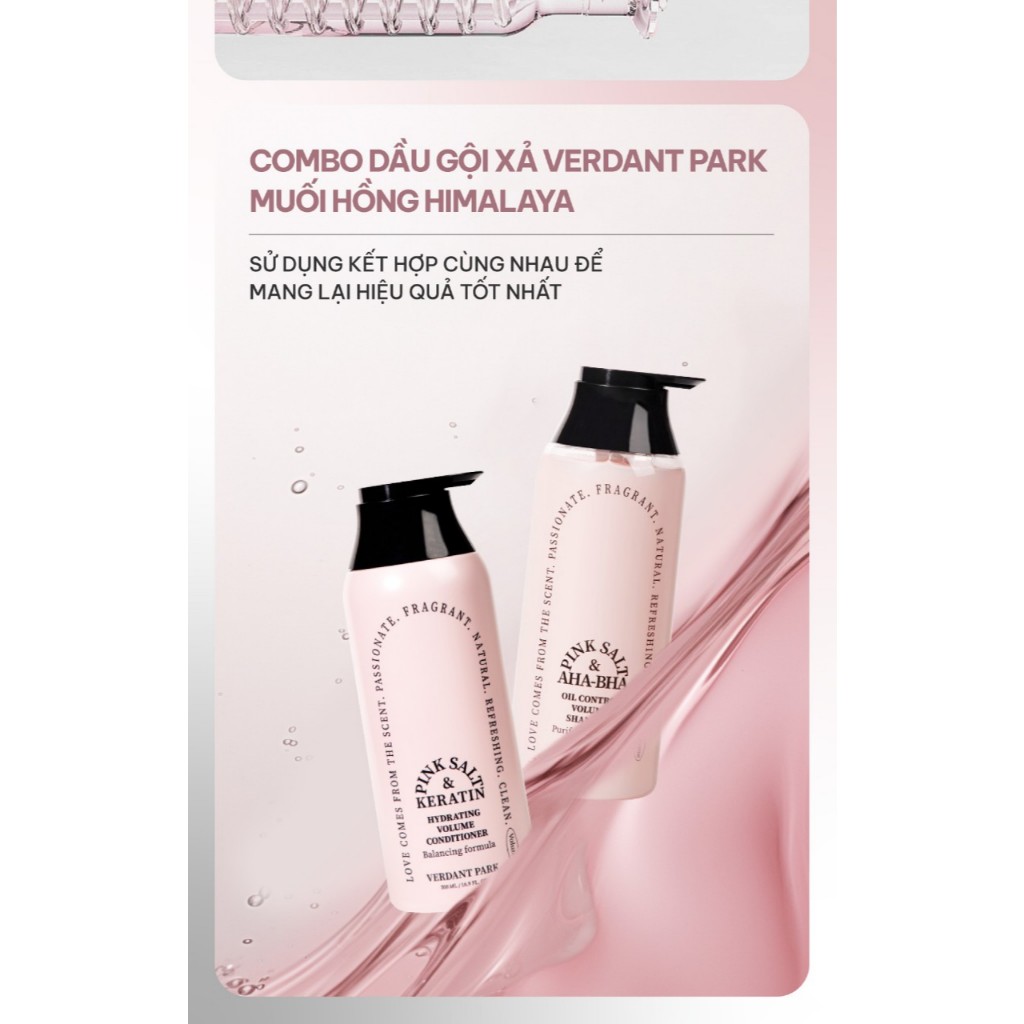 Cặp Gội Xả VERDANT PARK 500ml muối hồng Himalaya AHA BHA kiềm dầu phồng tóc Shampoo Conditioner 500mlx2
