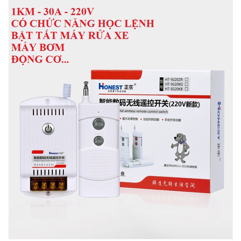 Bộ công tắc điều khiển từ xa 1KM honest Công suất lớn 40A 9220KG có Học lệnh - HÀNG CHÍNH HÃNG