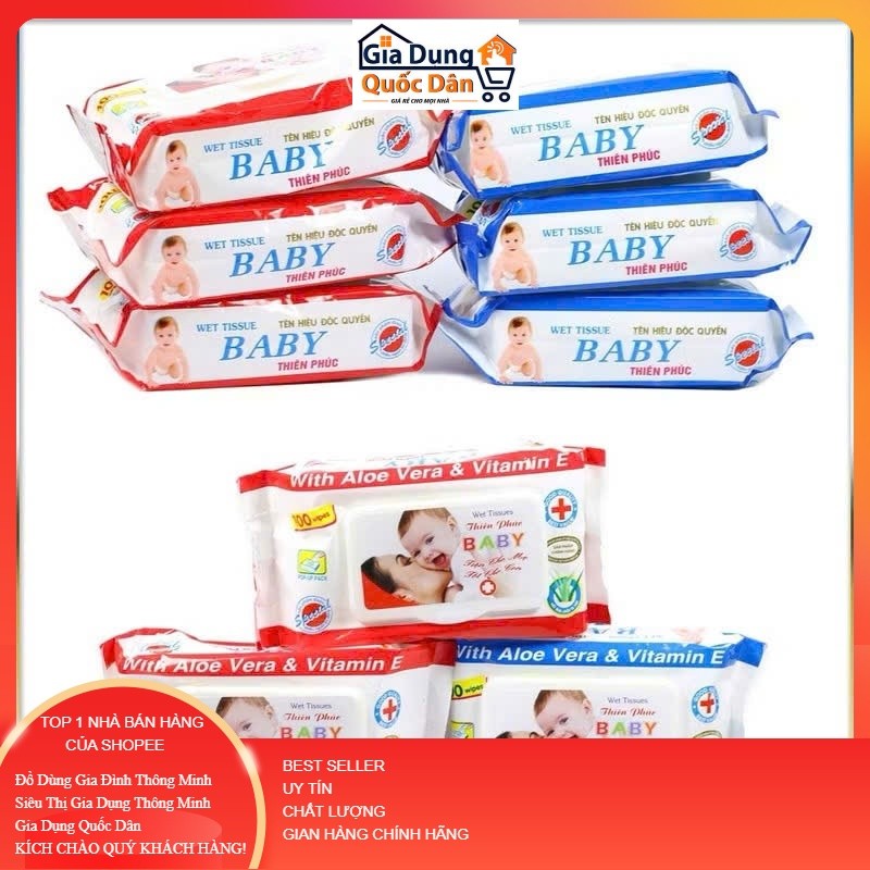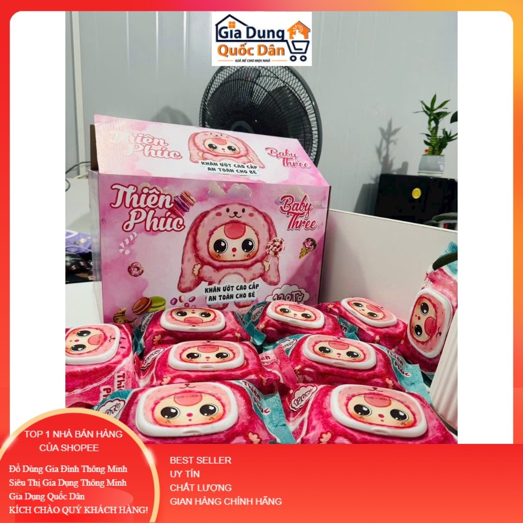 Thùng 32 Gói Khăn Ướt BabyThree Thiên Phúc, Mẫu Mới, Date Mới, Không Mùi, An Toàn Cho Da Bé