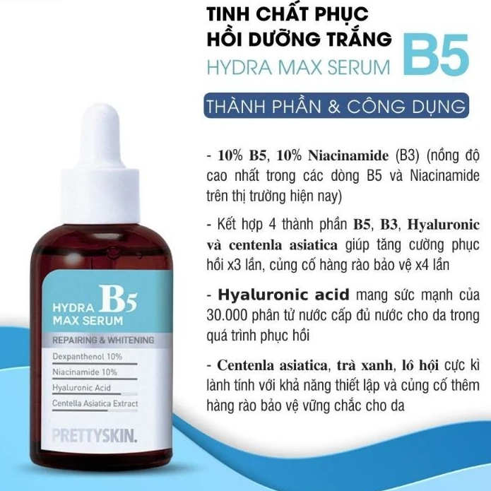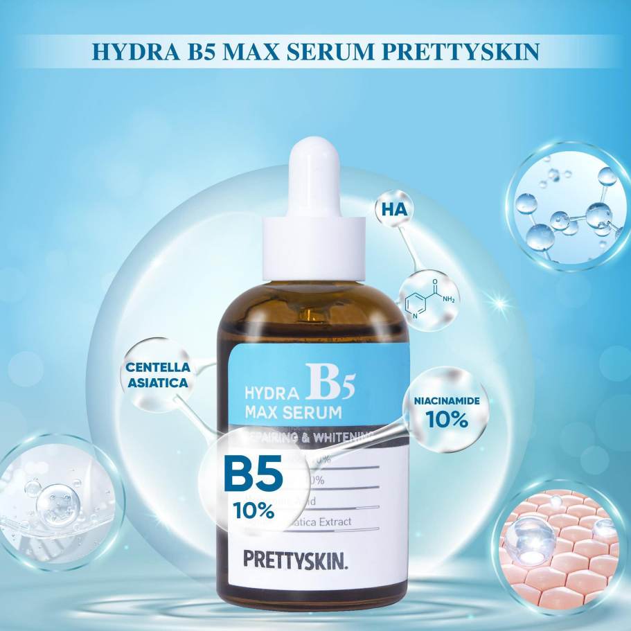 Serum B5 Pretty Skin Hydra Max Serum dưỡng ẩm dưỡng trắng da phục hồi da mịn màng 50ml Hàn Quốc chính hãng