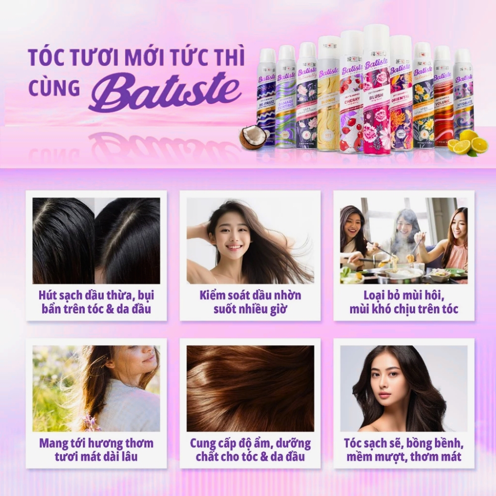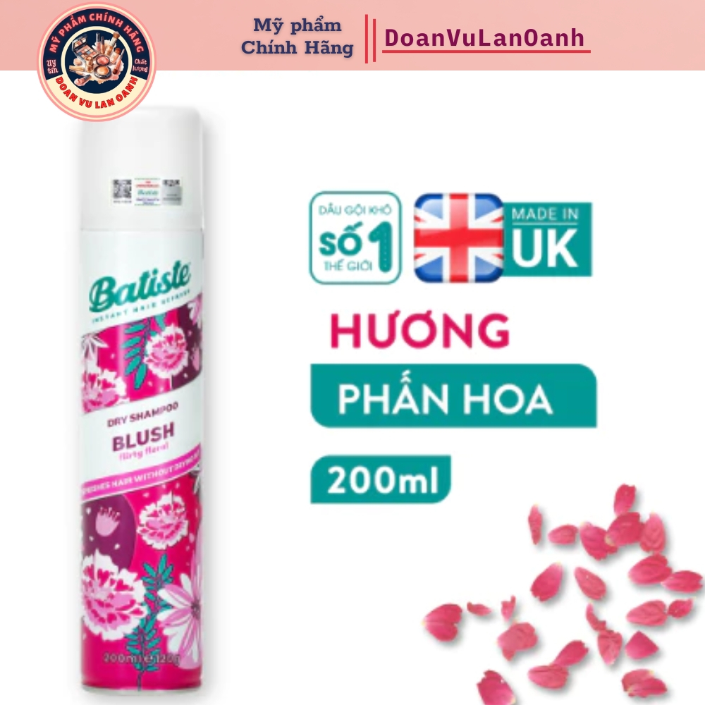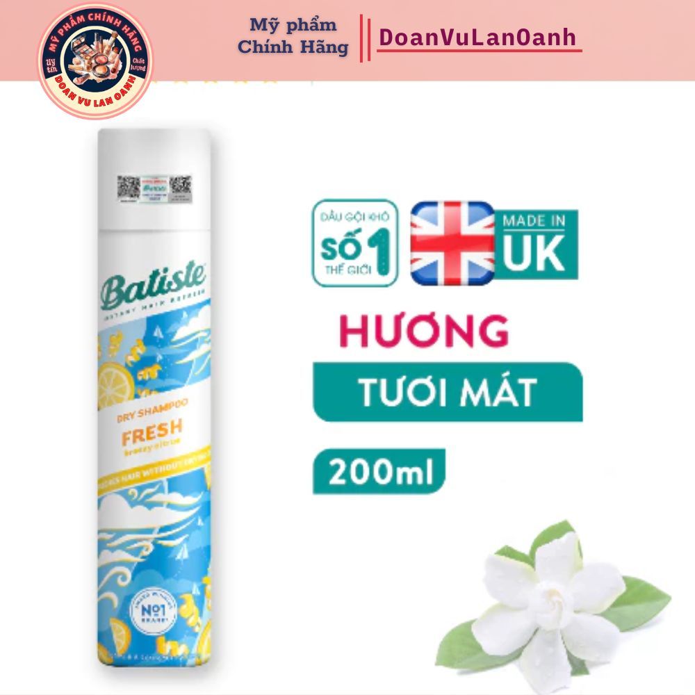 Dầu Gội Khô Batiste Dry Shampoo 200ml Chính Hãng Làm Sạch Tóc Nhanh, Giảm Bết Dính