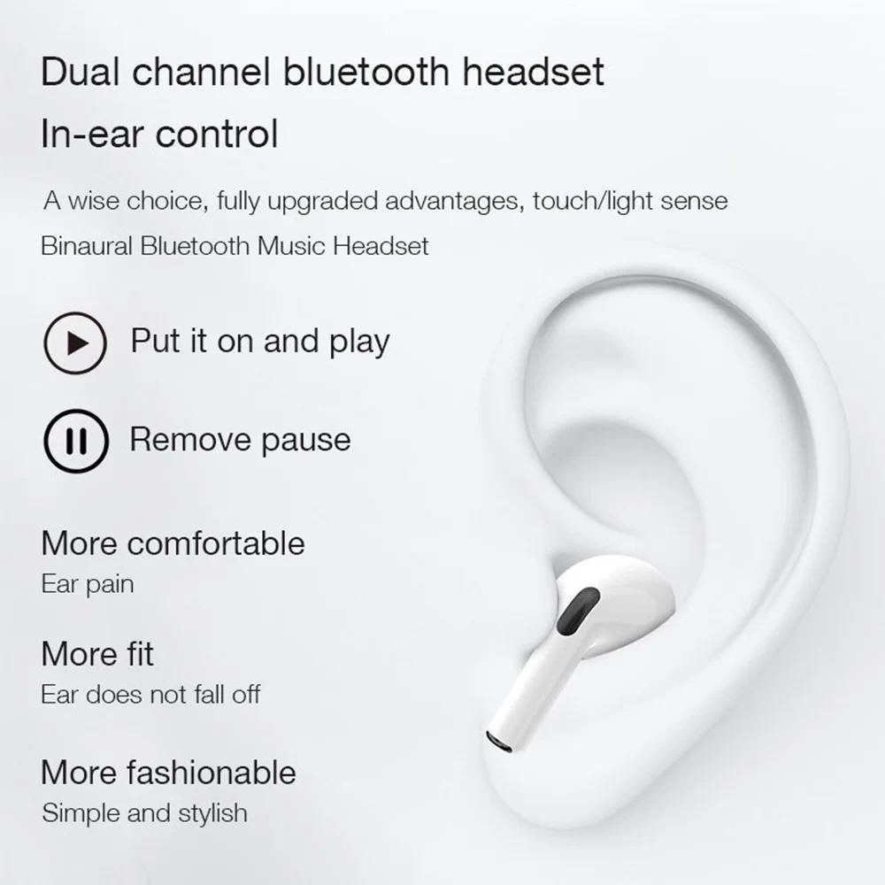Tai nghe Bluetooth không dây Pro4 Tai nghe chất lượng cao Giảm tiếng ồn chống nước Tai nghe thể thao Mini màu trắng