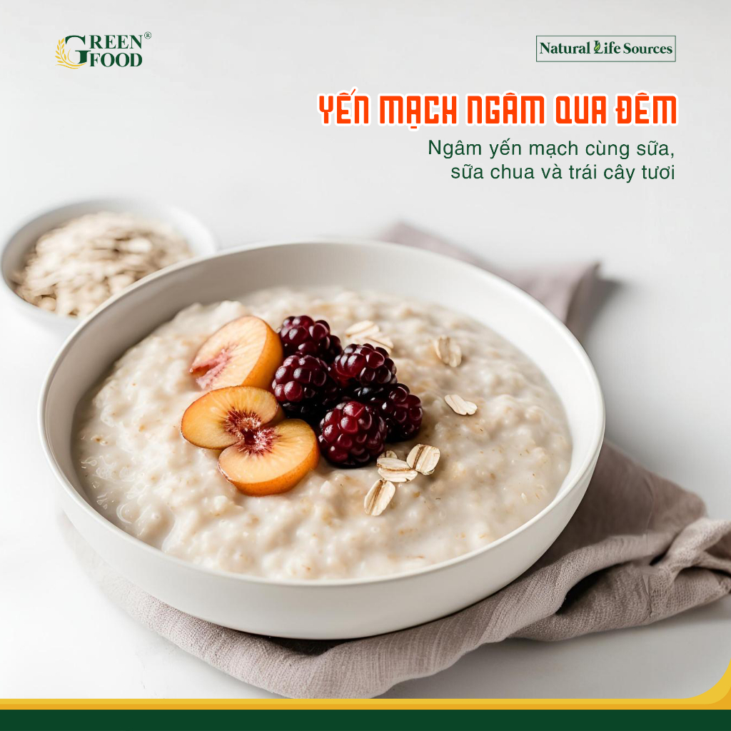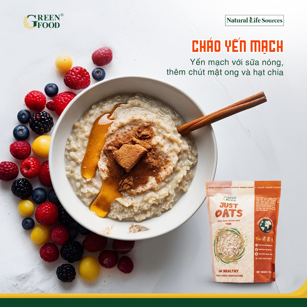 Yến Mạch Chile JUST OATS cán mỏng nguyên chất ăn liền - GREEN FOOD | Túi lớn 907g - Phù hợp Ăn Kiêng