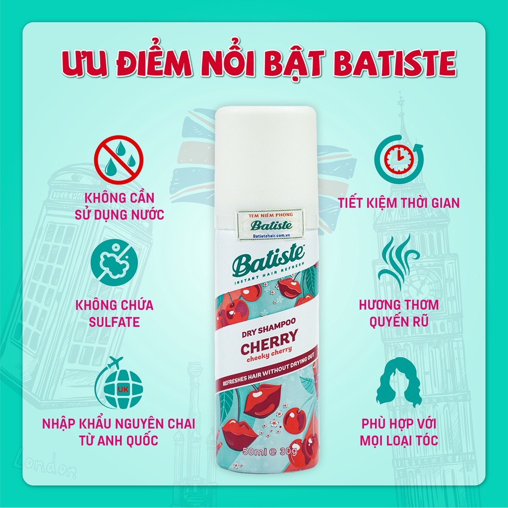 Dầu Gội Khô Batiste Dry Shampoo 200ml Hết Ngứa, Hết Bết Dính Tóc