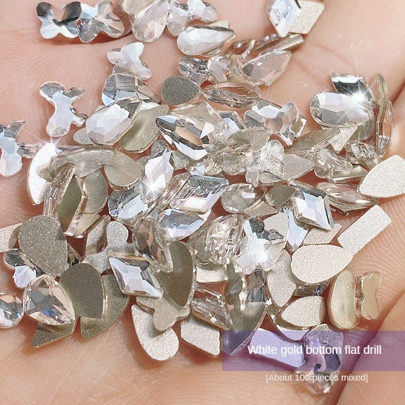 100 Phụ kiện trang trí móng nghệ thuật Hỗn hợp Miếng dán móng tay đính đá lấp lánh New York Storm Nail Drills [bluey]