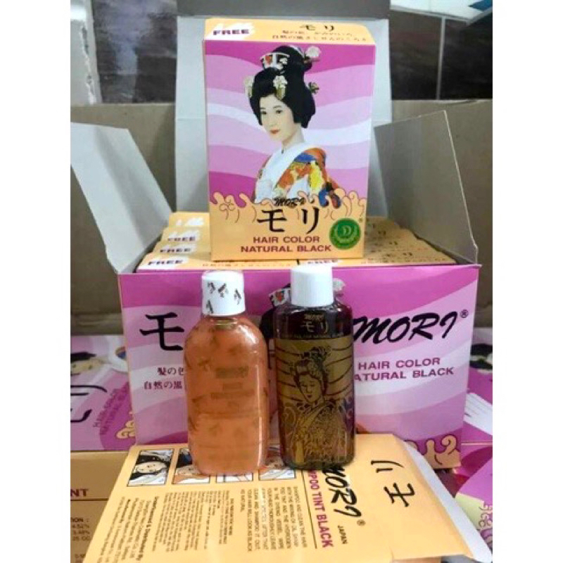 ( Hộp 12 bộ ) Thuốc gội nhuộm tóc đen MORI Thailand - Hàng Chính Hãng