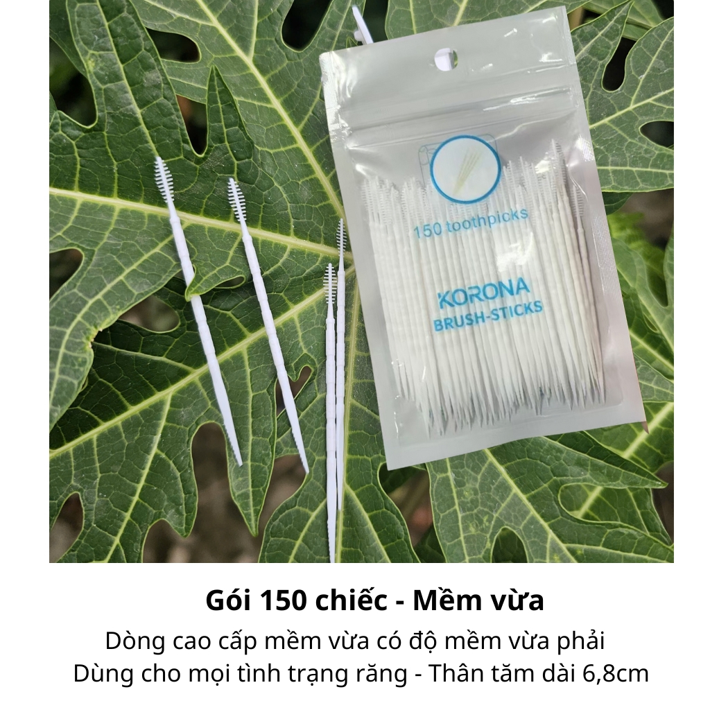 Tăm nha khoa, Tăm xỉa răng nha khoa 2 đầu Korona (Hộp 50- 300 chiếc), tăm nhựa tăm y tế cao cấp siêu mềm