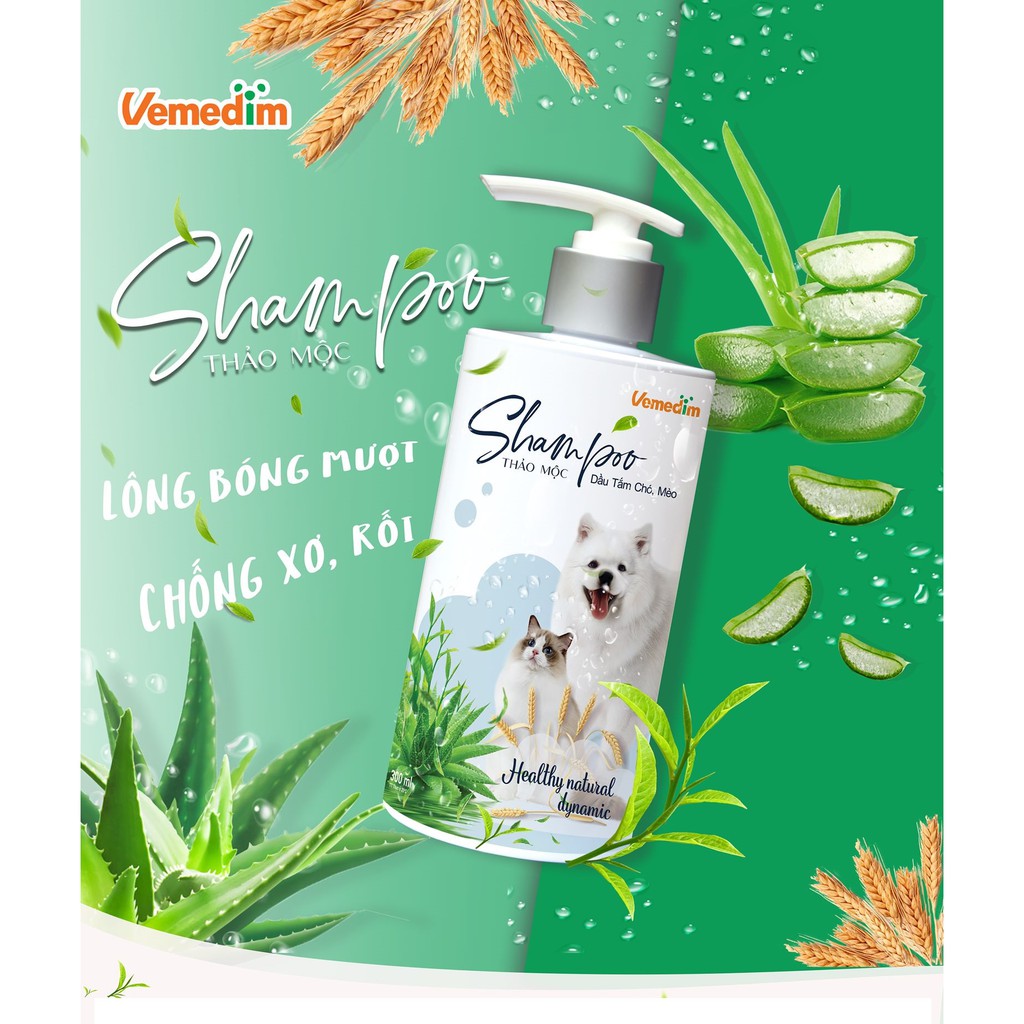 Vemedim Shampoo thảo mộc, sữa tắm cho chó mèo giúp bộ lông bóng mượt, chai 300ml