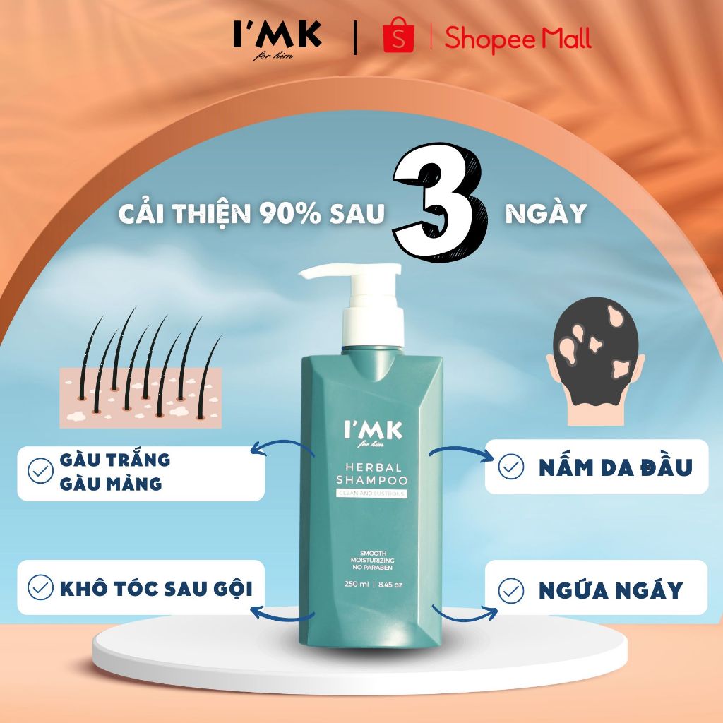 Dầu Gội Đầu Cho Nam Giới I'MK Herbal Shampoo Sạch Gàu - Đánh Bay Ngứa và Nấm Da Đầu