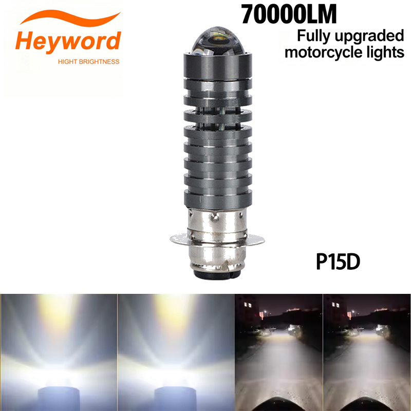 Heyword 70000LM P15D H6 LED Đèn Pha Xe Máy CSP Ống Kính Trắng Vàng Hi / Lo Beam Đèn Trước