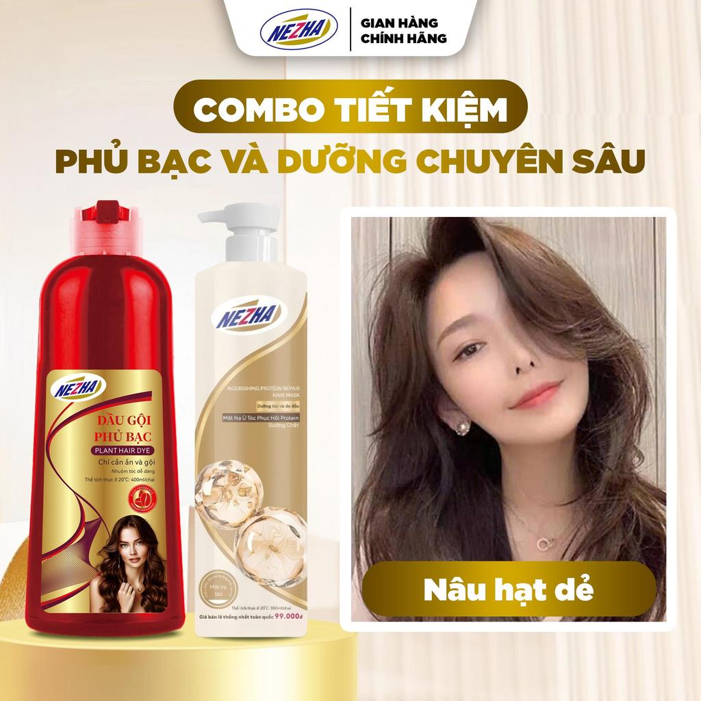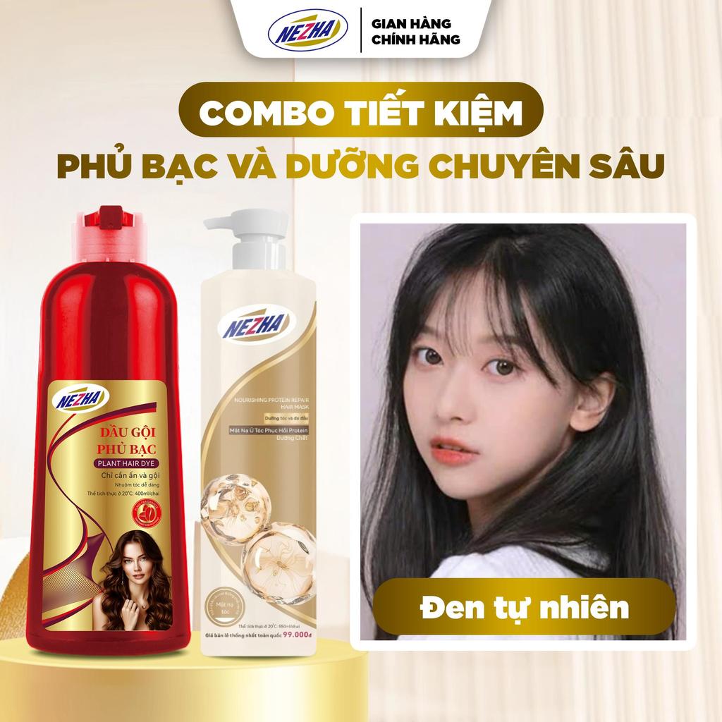 [COMBO HOT] Dầu Gội Phủ Bạc Nezha + Kem Ủ Dưỡng Tóc – Phủ bạc siêu nhanh, Chống khô xơ, Dưỡng tóc salon tại nhà