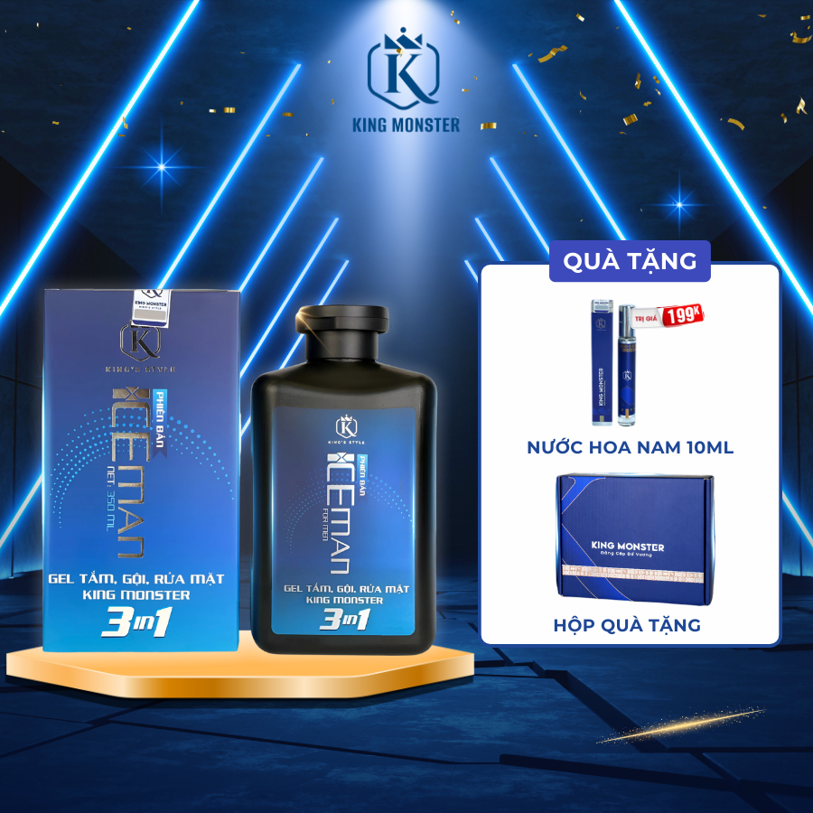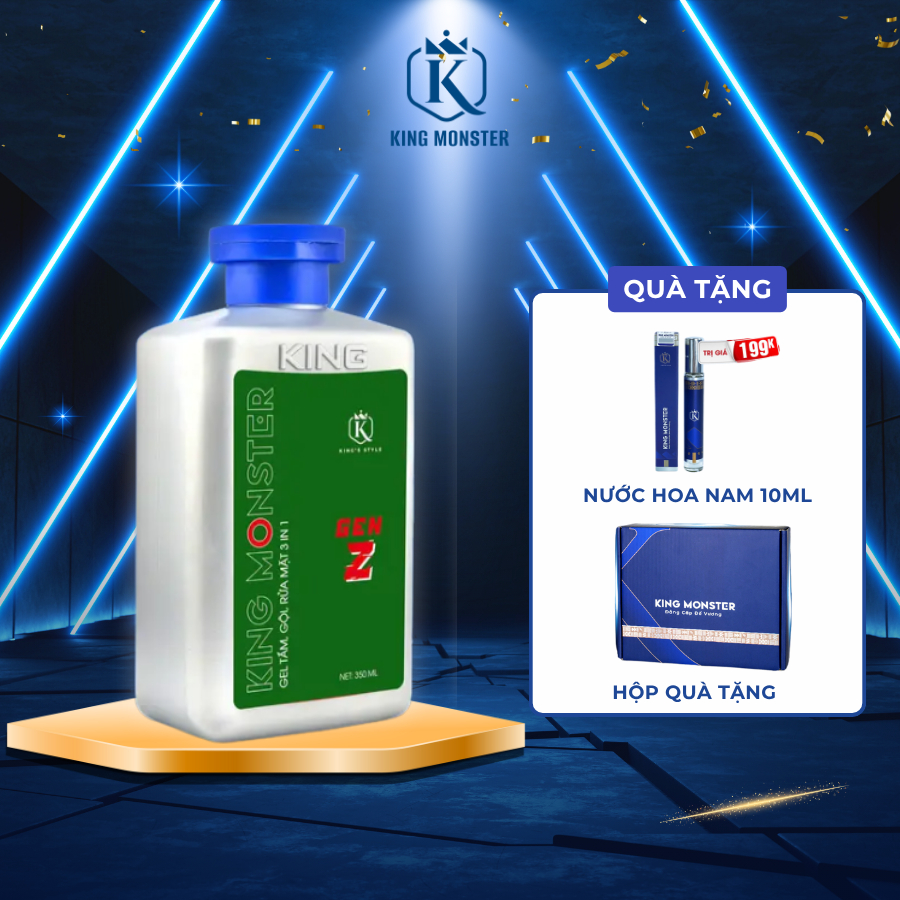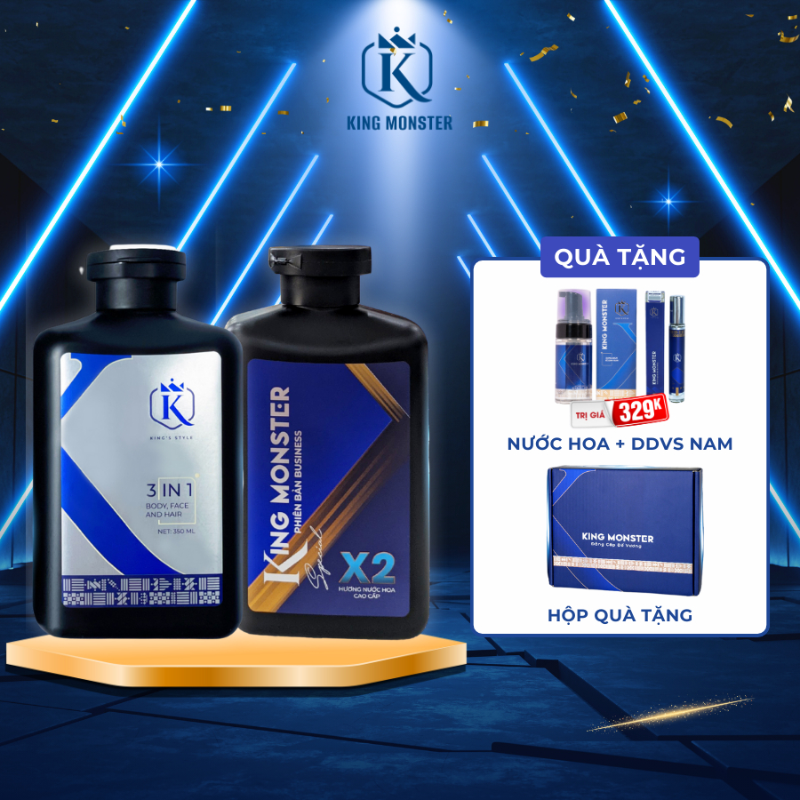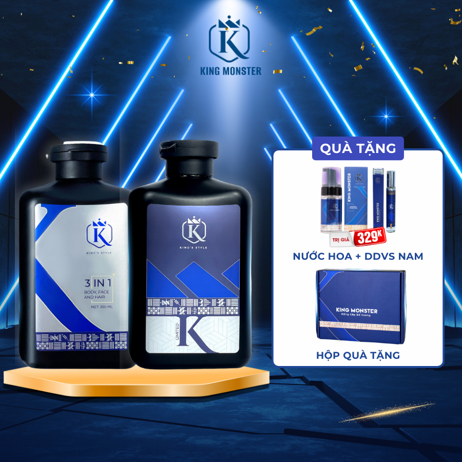 [TẶNG NƯỚC HOA] Sữa tắm nam 3 in 1 KING MONSTER toàn thân hương nước hoa thơm lâu và sạch sâu, ngừa mụn lưng hiệu quả
