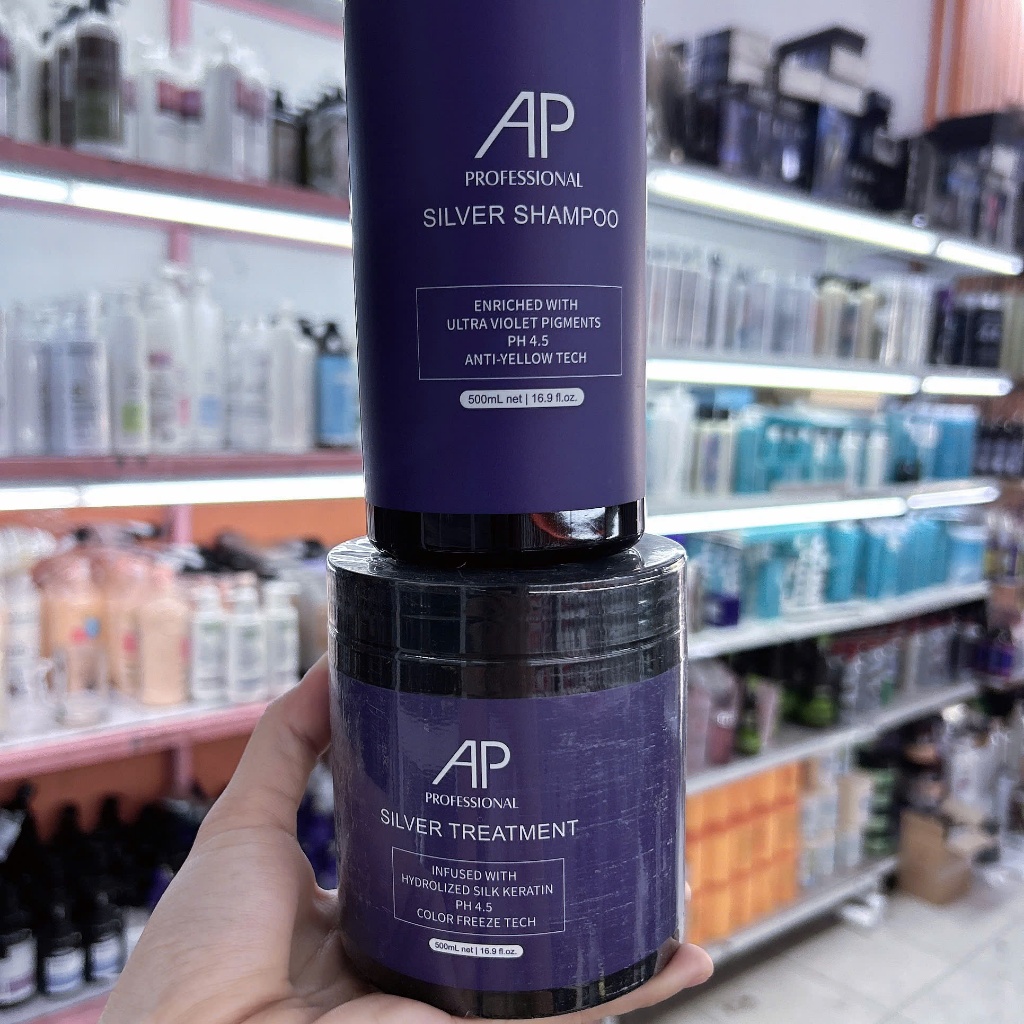 Dầu gội xả tím khử vàng AP Colorcare Silver 500ML, dành cho tóc tẩy, tóc trắng bạch kim