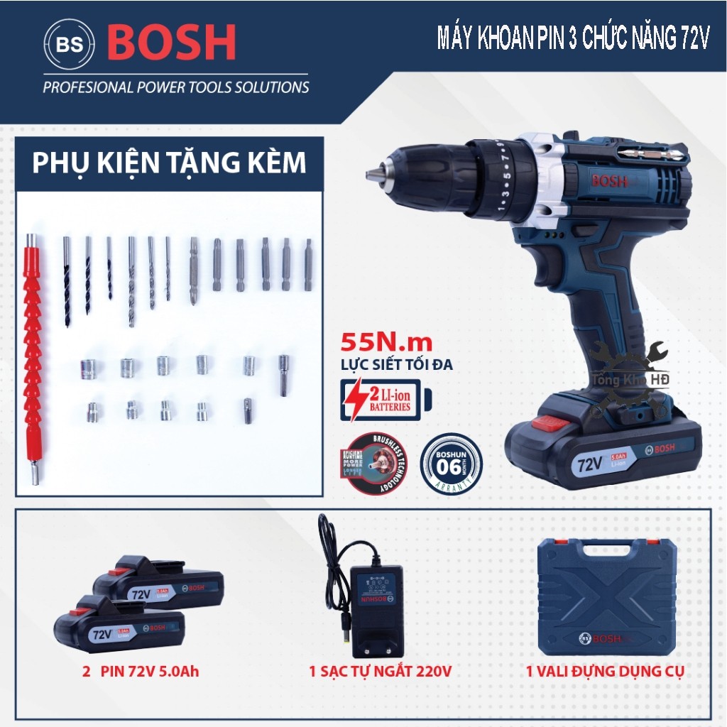Máy khoan pin 72V | Pin cao cấp | Khoan 3 chức năng bắt vít khoan tường có búa