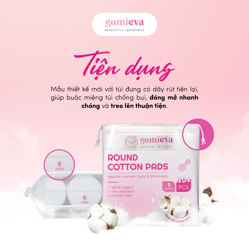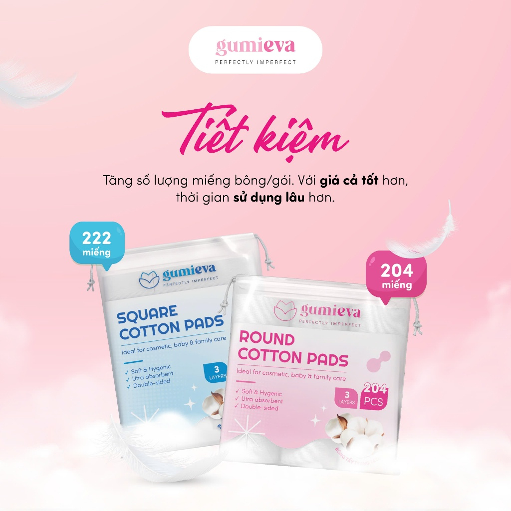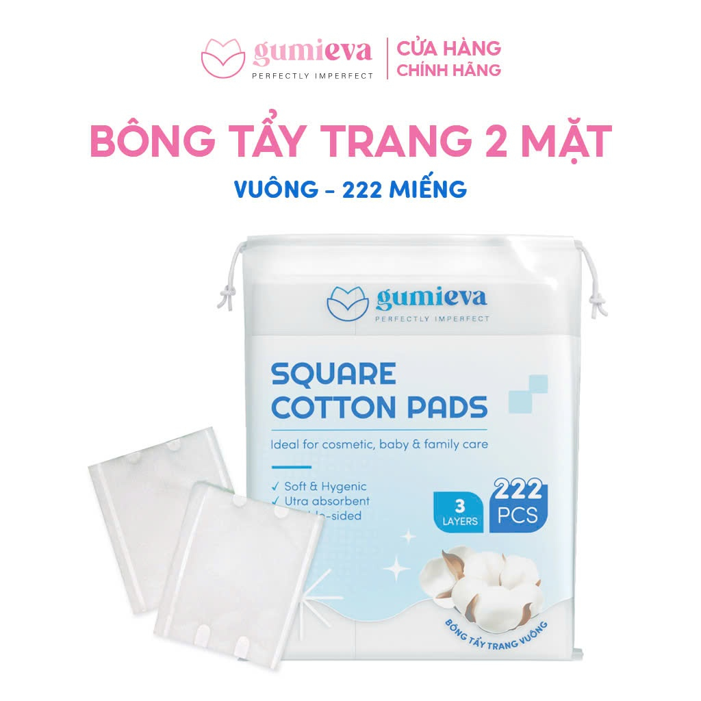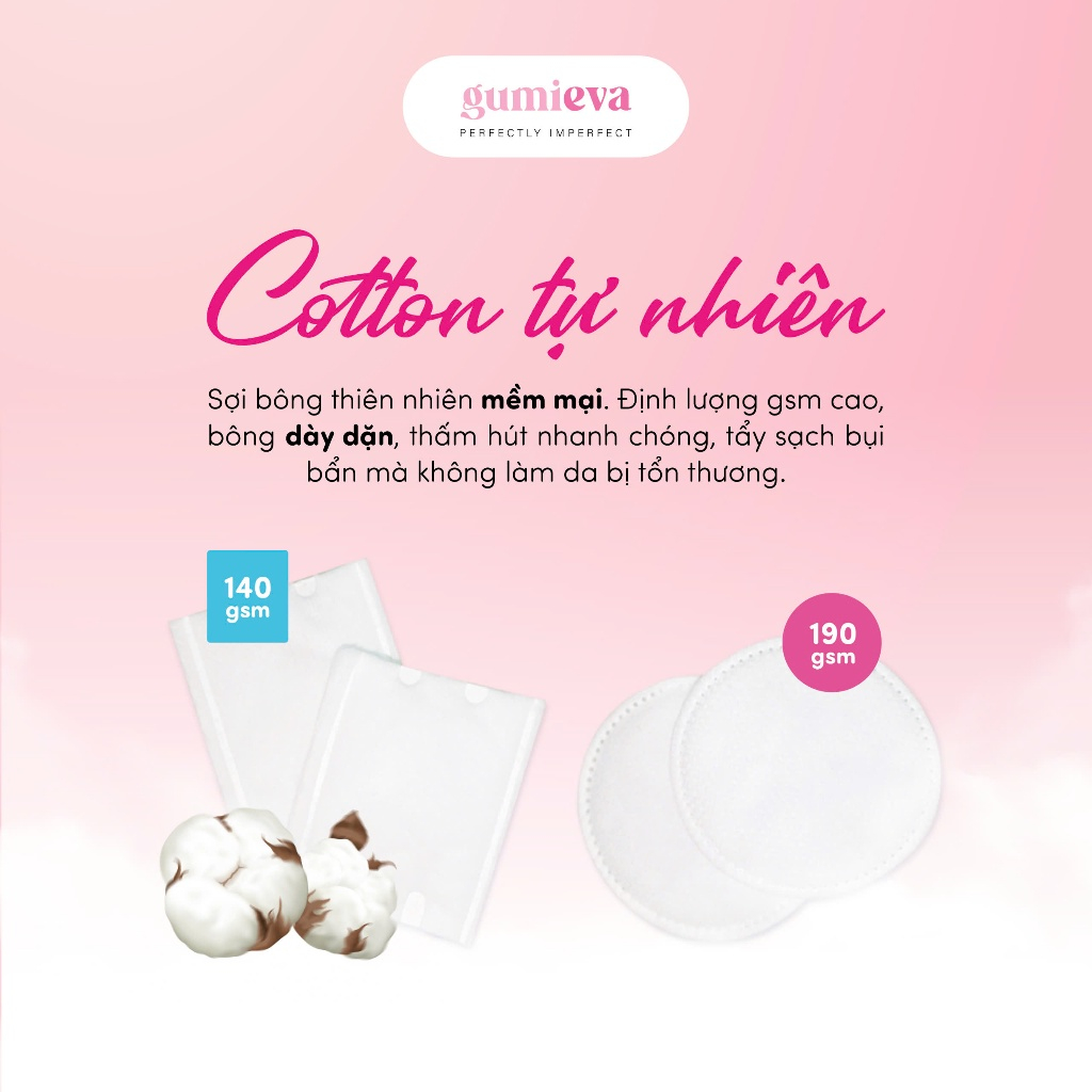 Bông tẩy trang Gumi 2 mặt lớp cotton tự nhiên 222 miếng - gói bông tẩy trang gumieva round pads