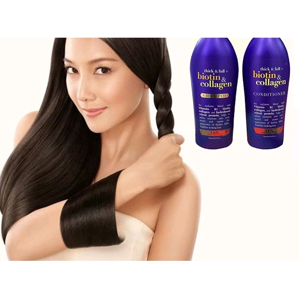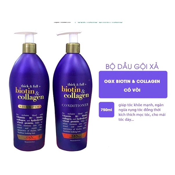 Bộ Gội Xả Ogx Thick & Full Biotin Collagen 750ml (Có Vòi Xit )